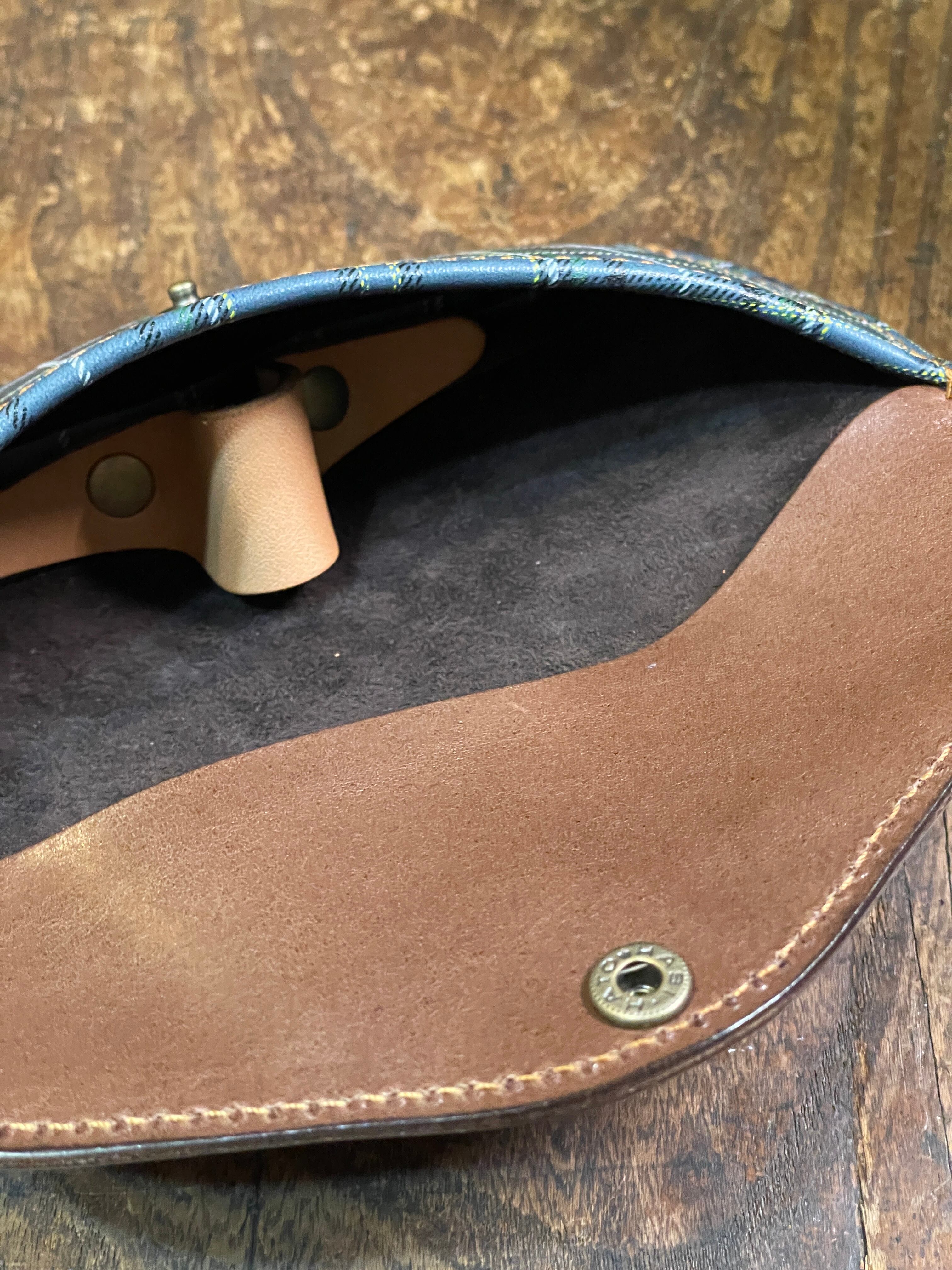 ノースブリッジにはベルトに使用する栃木レザーの中でも分厚く固いシリーズの革を使用し高さをつけることにより、メガネケースのホックを留める時にメガネに圧が干渉しないようにしています。
