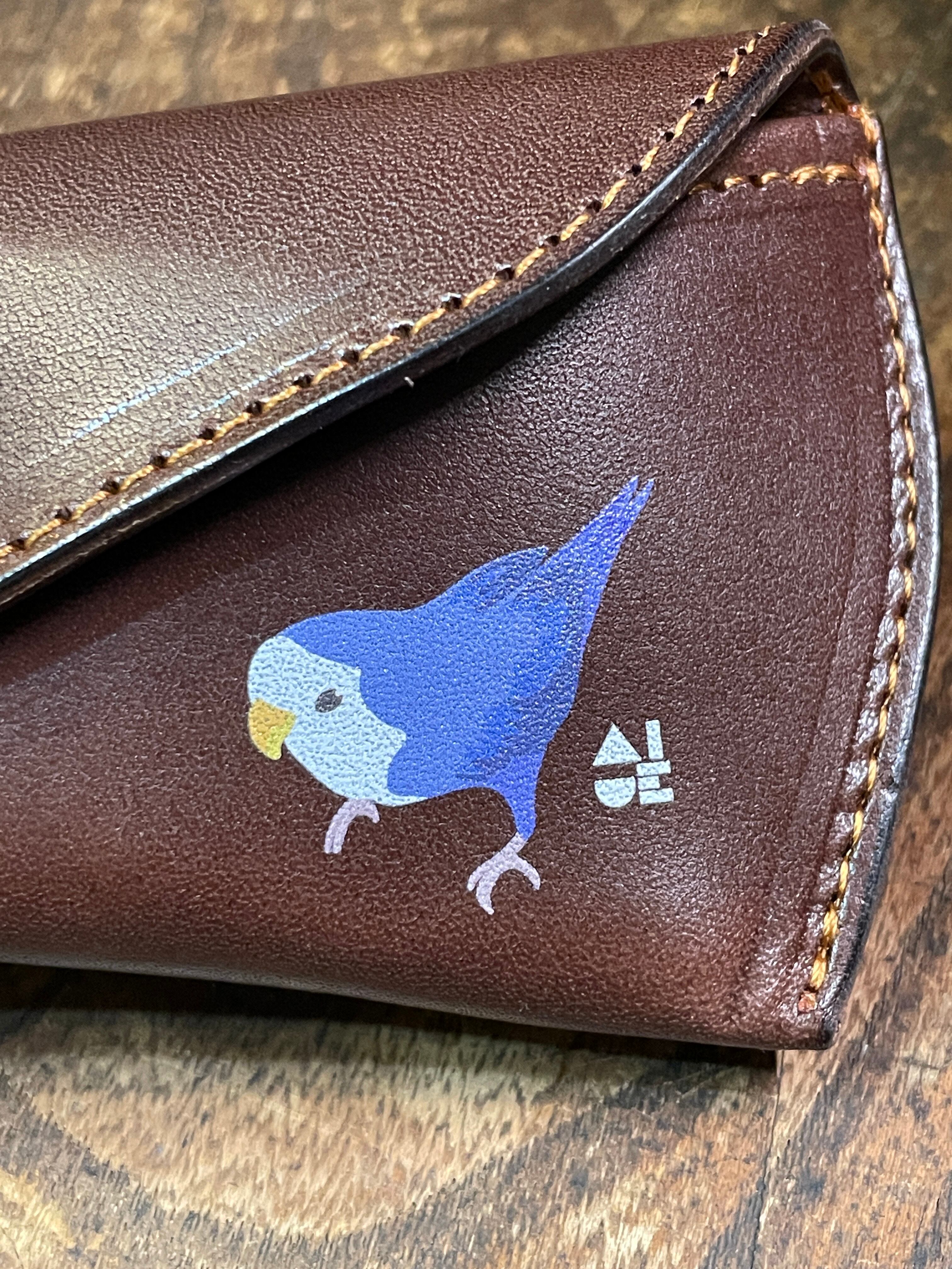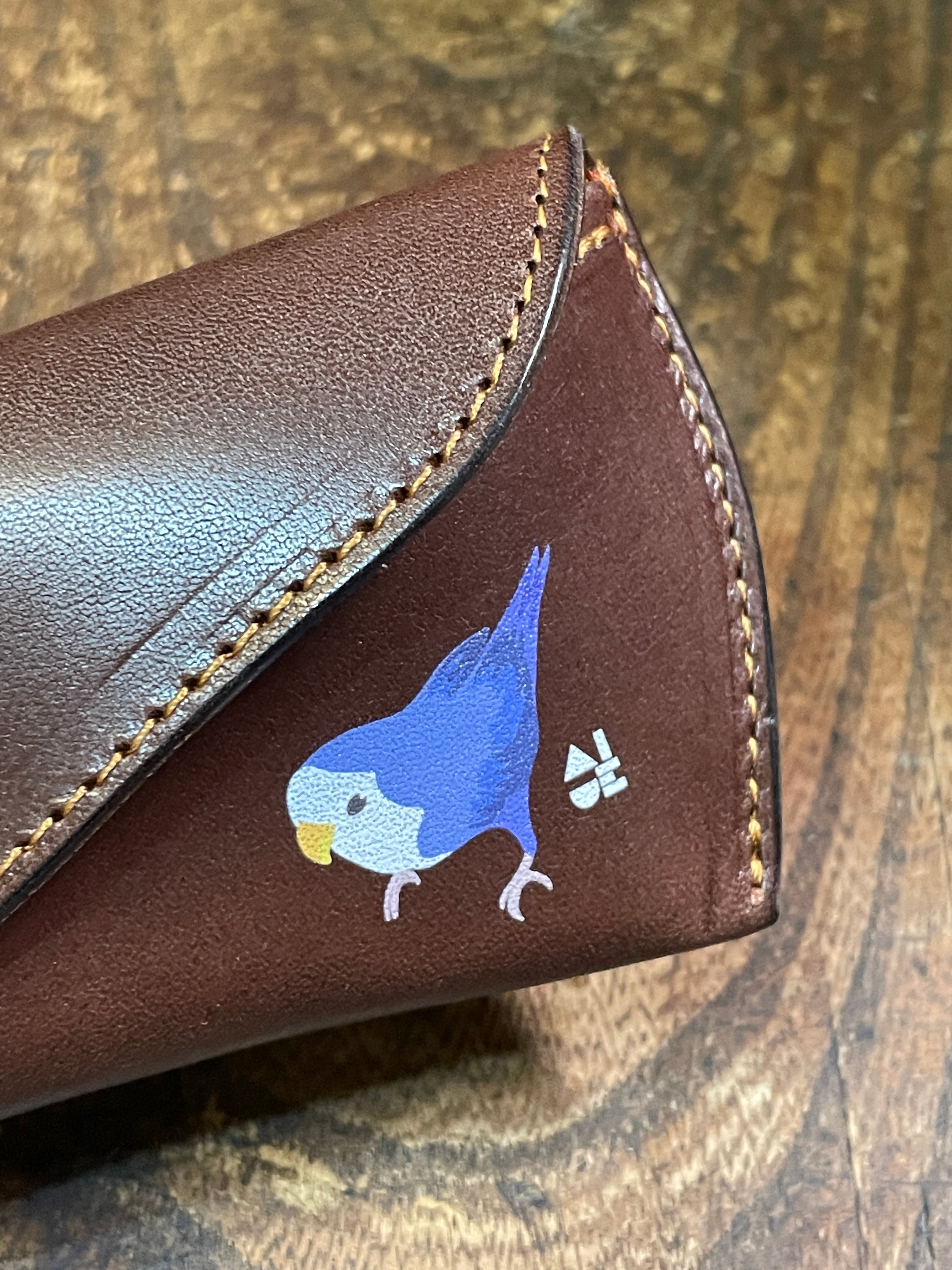 どうぞ可愛いイラストと同時に本革の経年変化をお愉しみください。