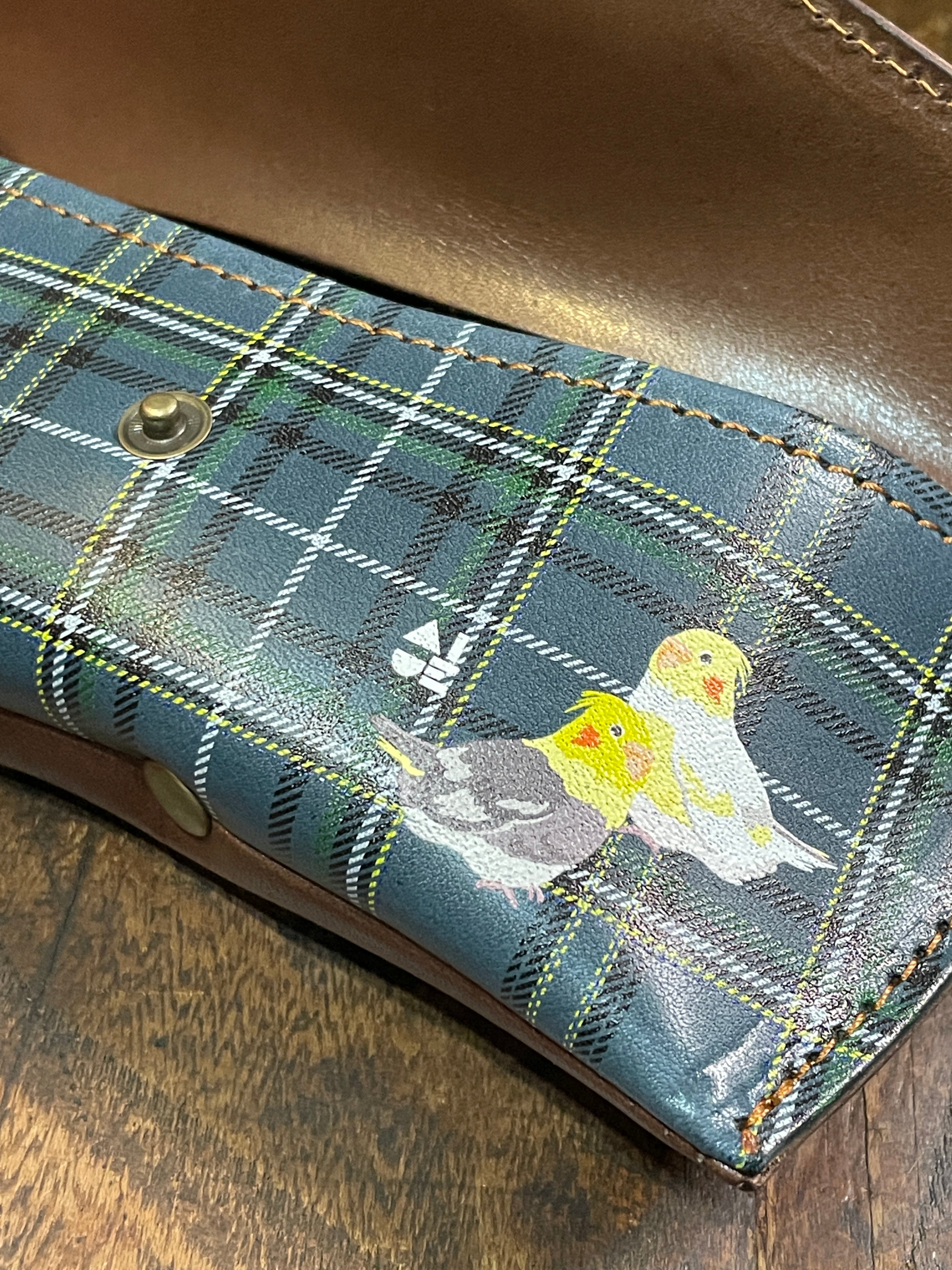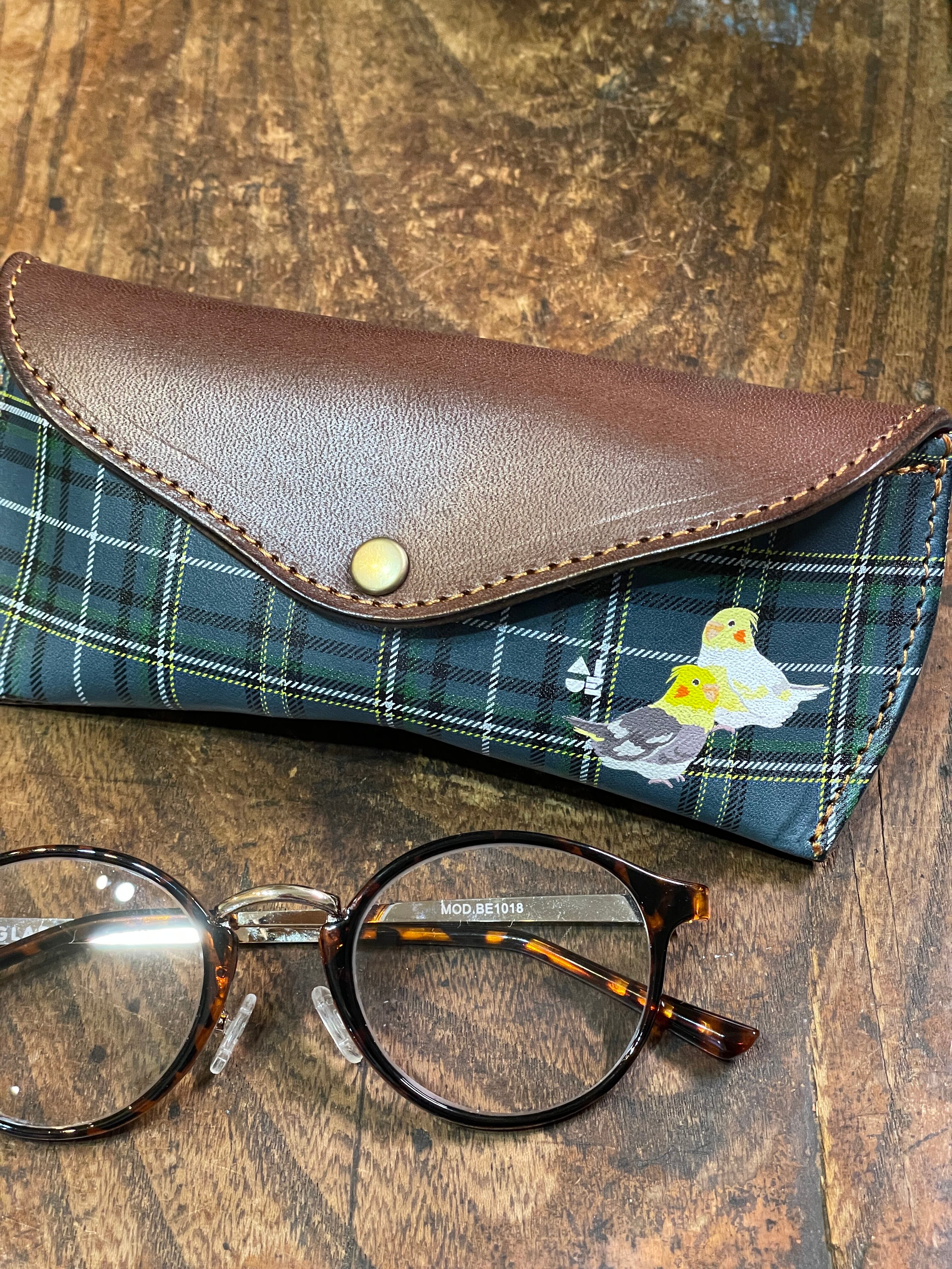 【送料無料】メガネケース オカメインコ 2羽 ノーマル と ルチノー ネイビー タータンチェック 栃木レザー