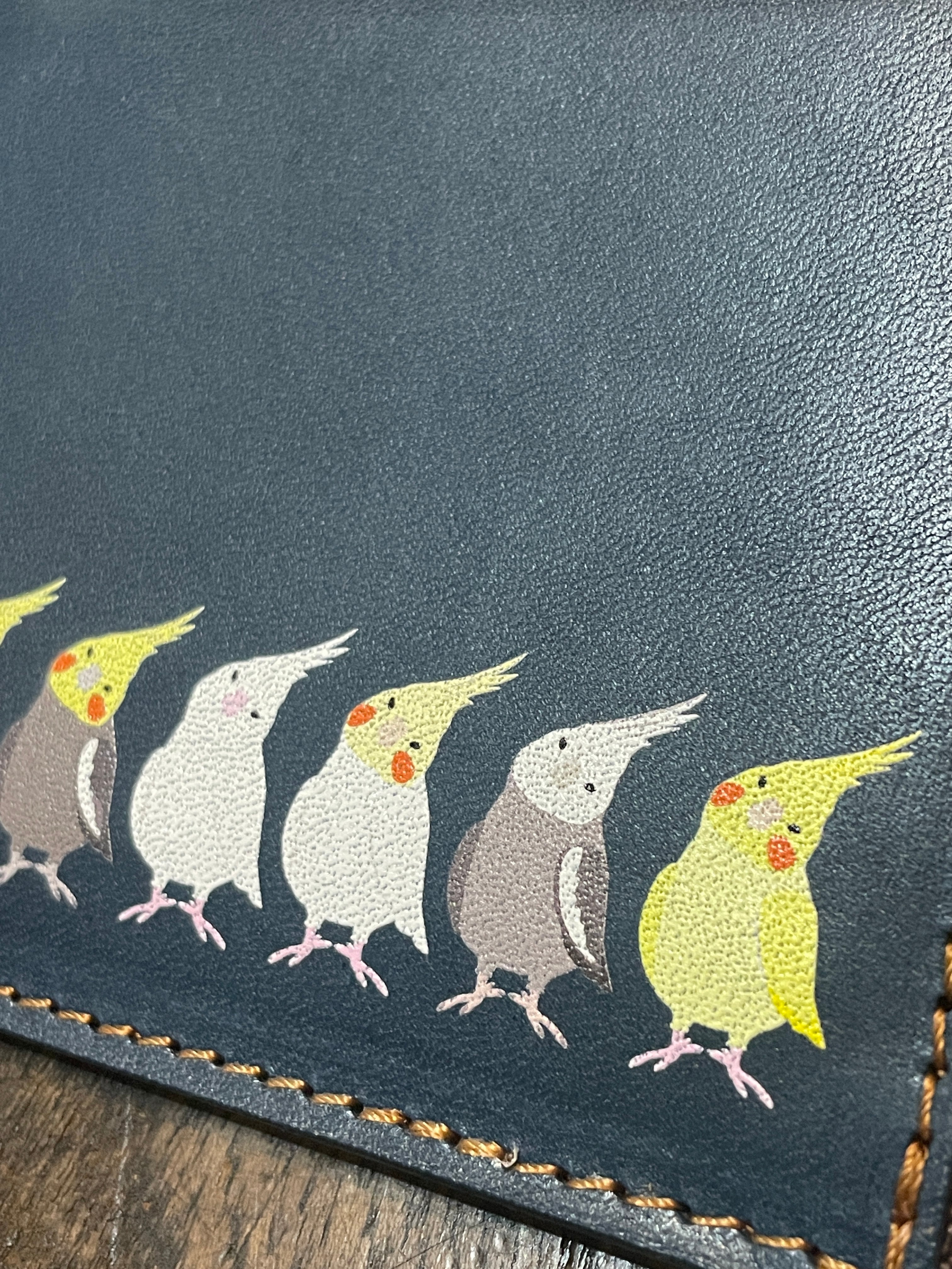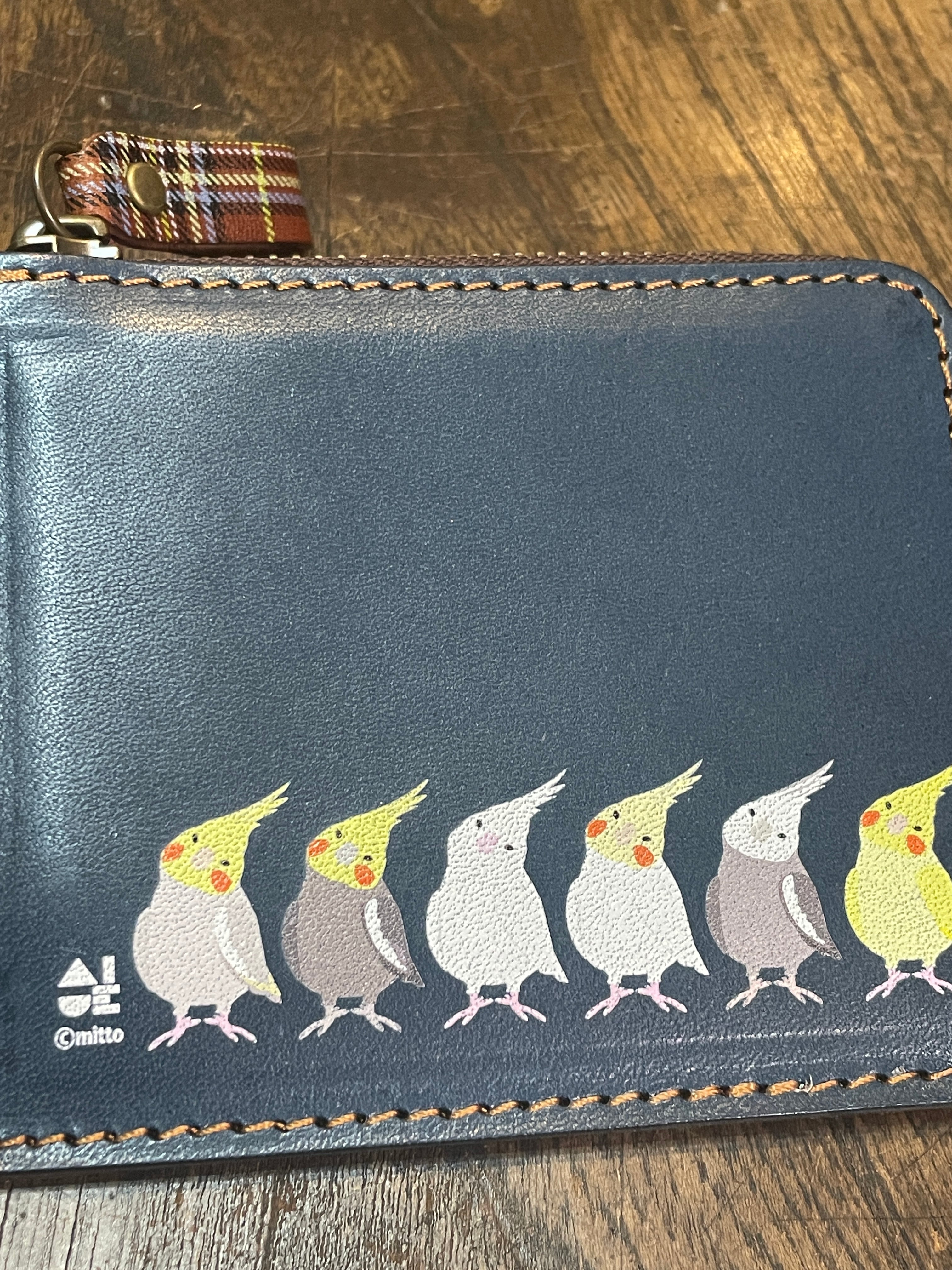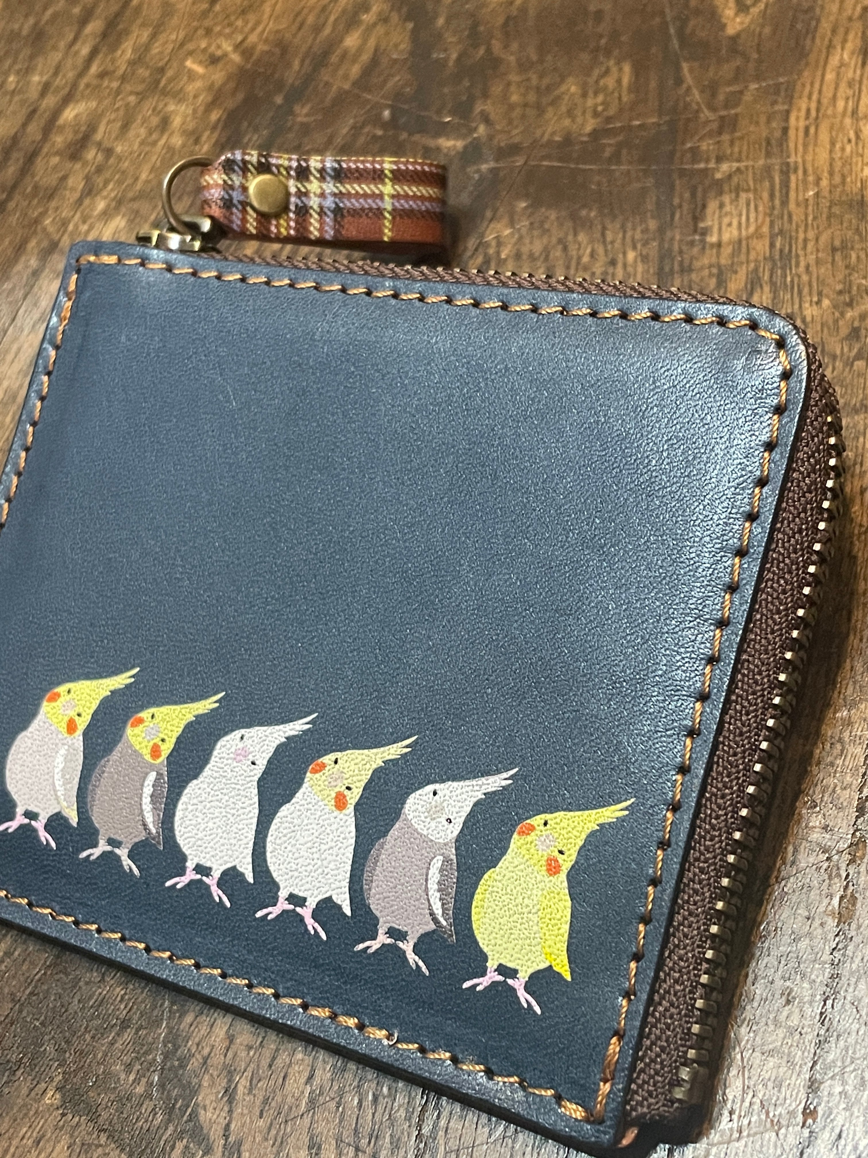 【送料無料】 L字ファスナー財布 ネイビー オカメインコ ぽわん 財布 DarkBlue 栃木レザー おかめいんこ