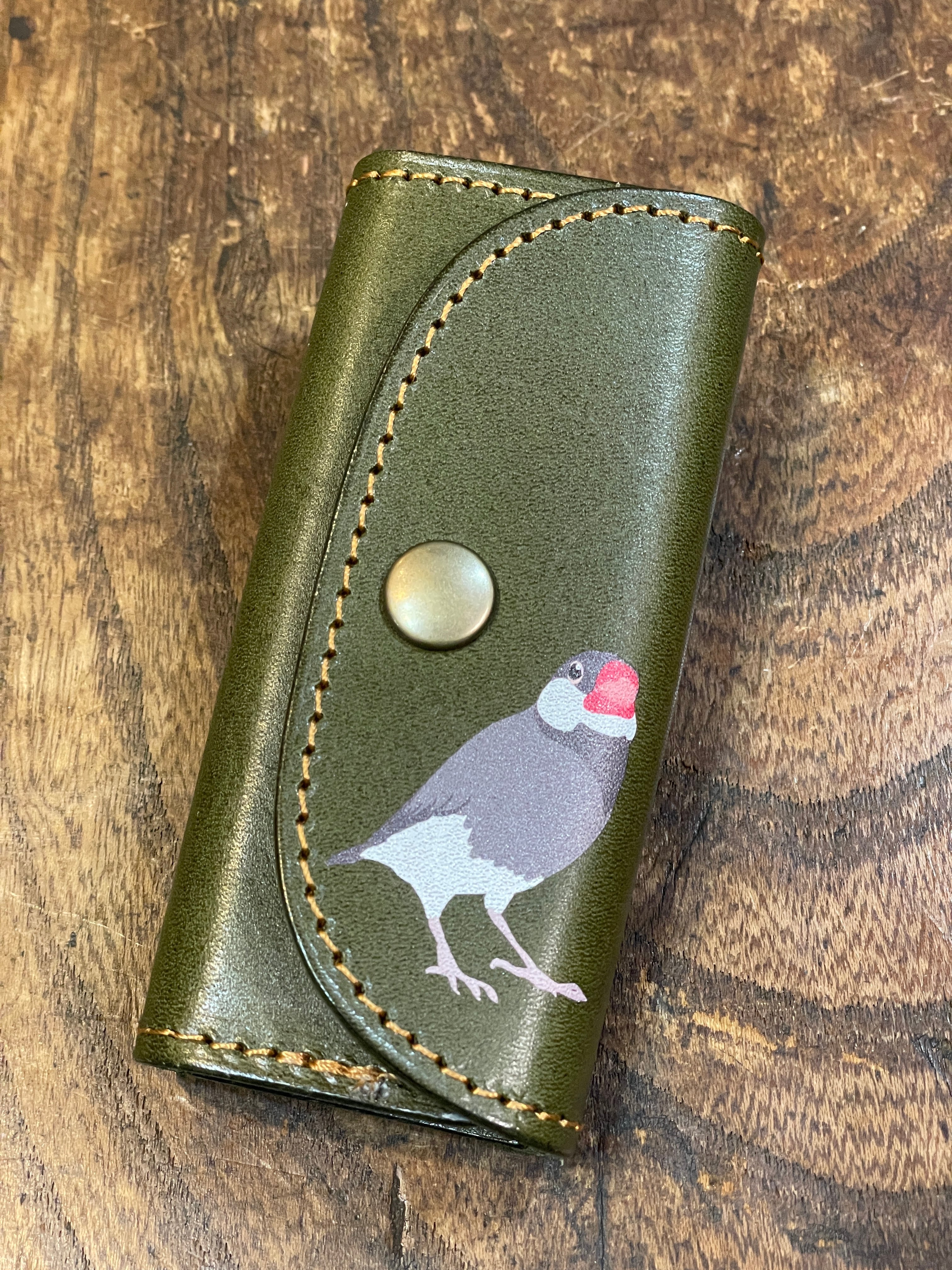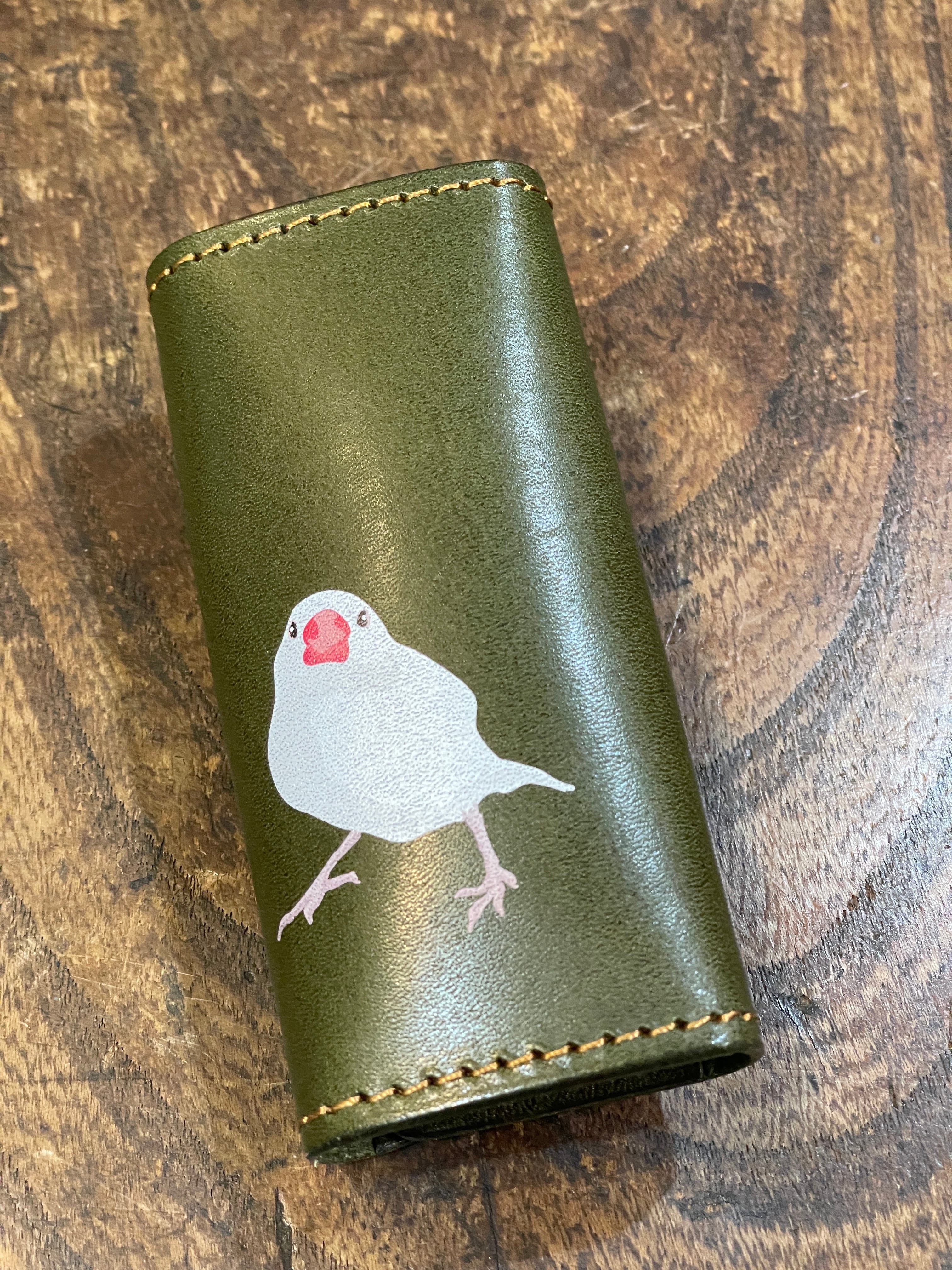 スリムキーケース 桜文鳥 & 白文鳥 グリーン 文鳥 ぶんちょう ブンチョウ