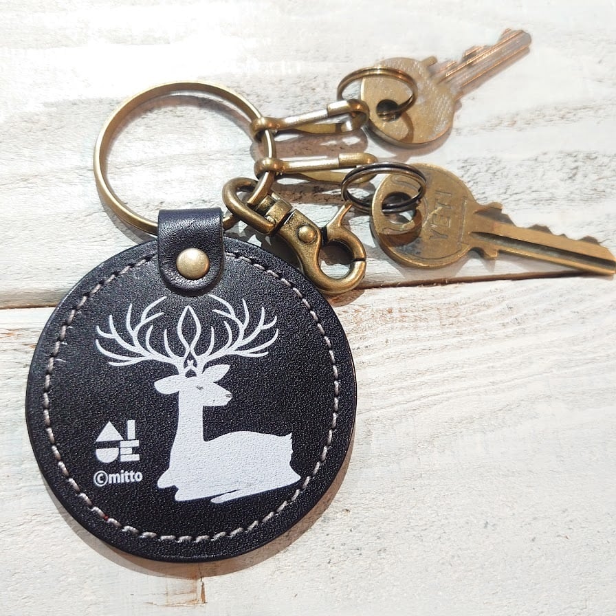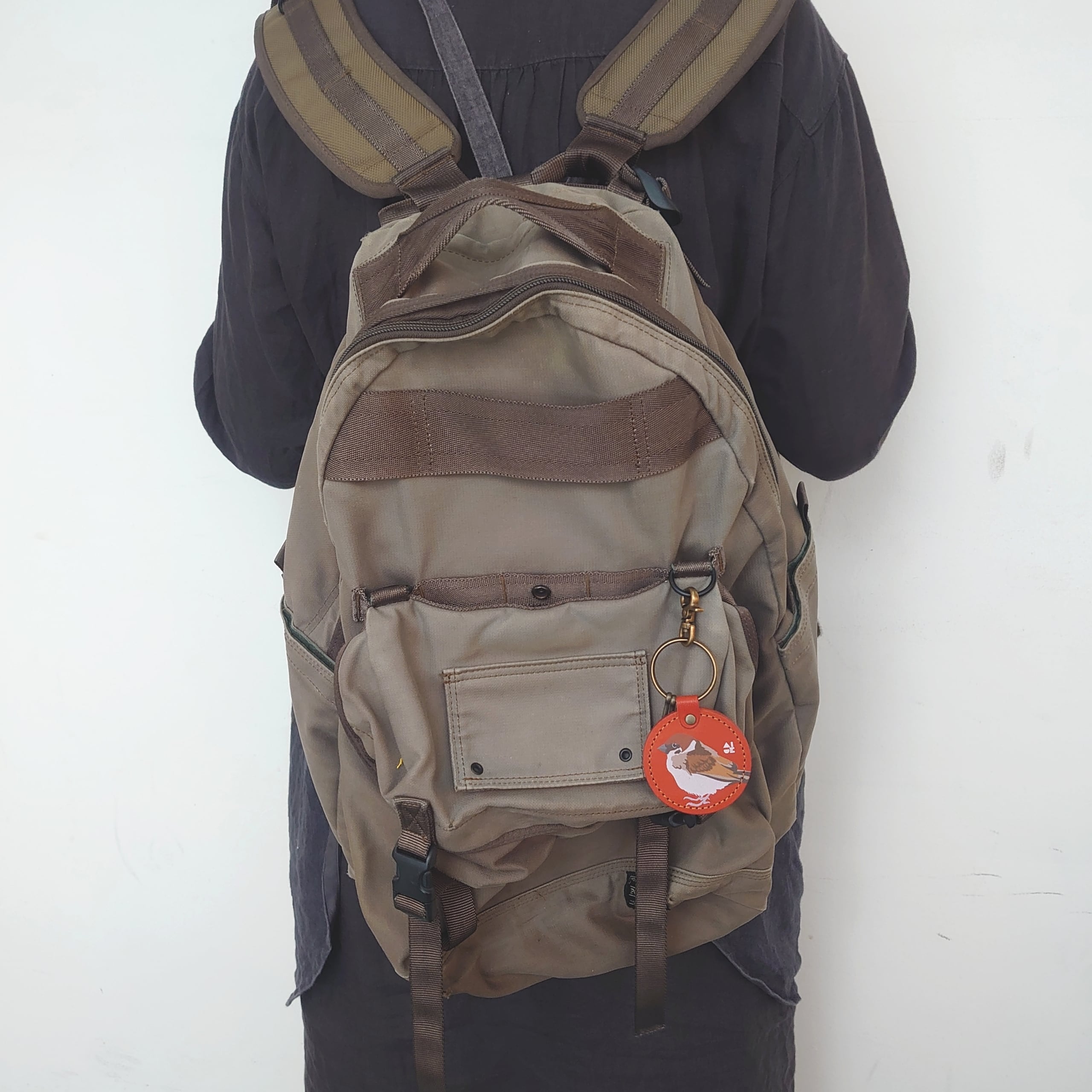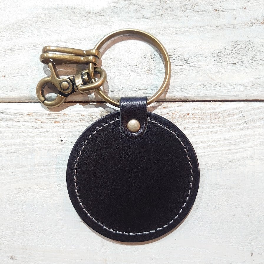女性の手のひらにもおさまるサイズの、Φ60ミリのキーホルダー。