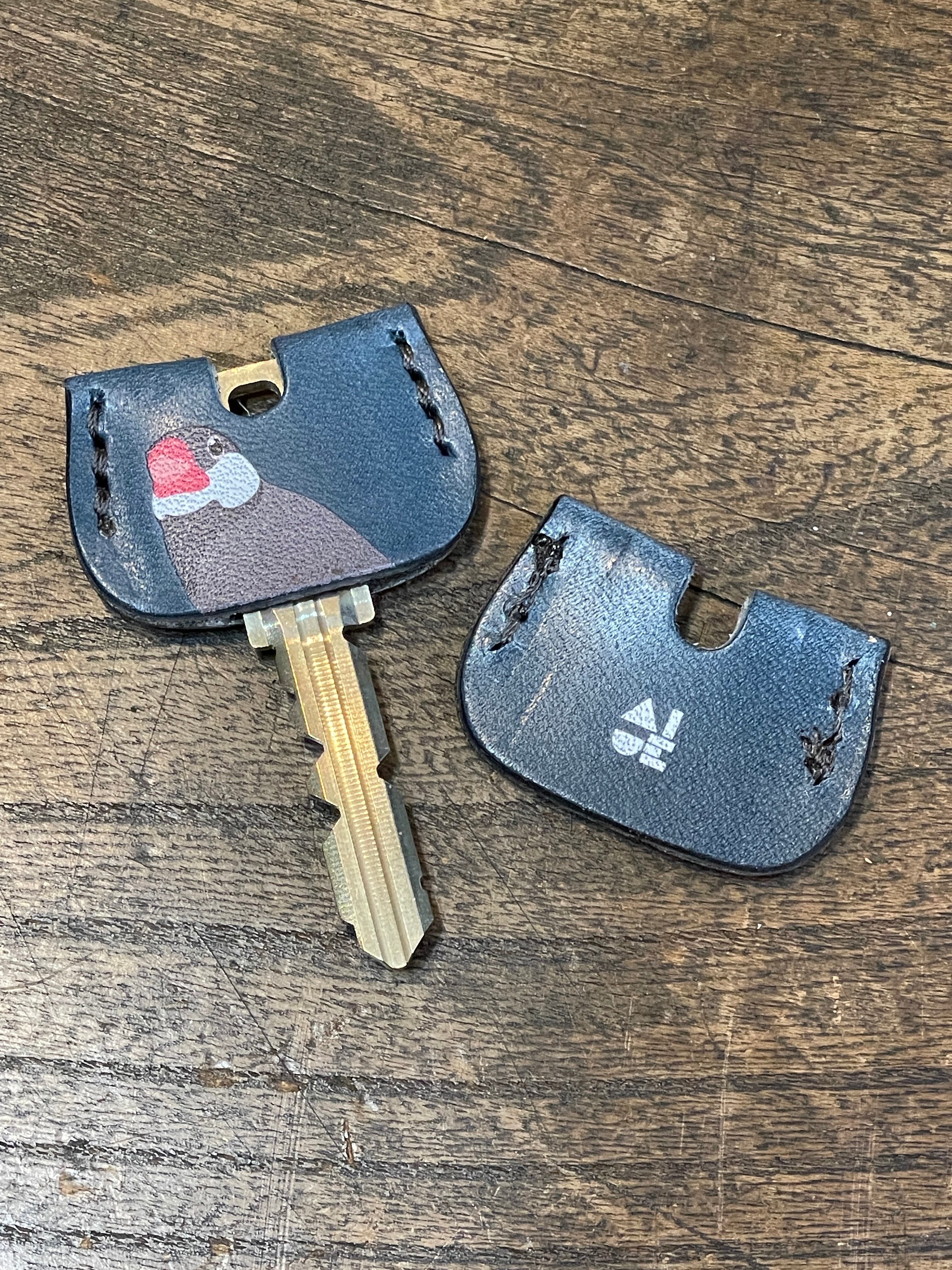 どうぞ可愛いイラストと同時に本革の経年変化をお愉しみください。