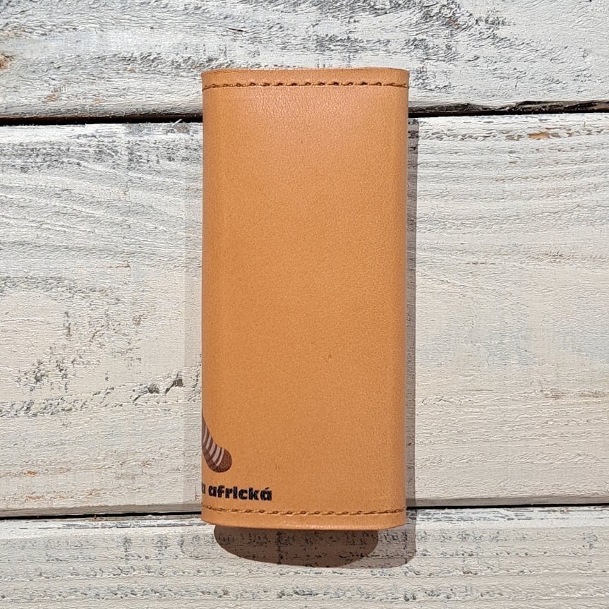 もっともオーソドックスな形、鍵を付ける金具は4連の壊れにくくて着脱が容易なGリングを採用しました。また日常使いのアイテムですので、できるだけ軽くそして強度はしっかりの最適な厚みにした革で制作しました。