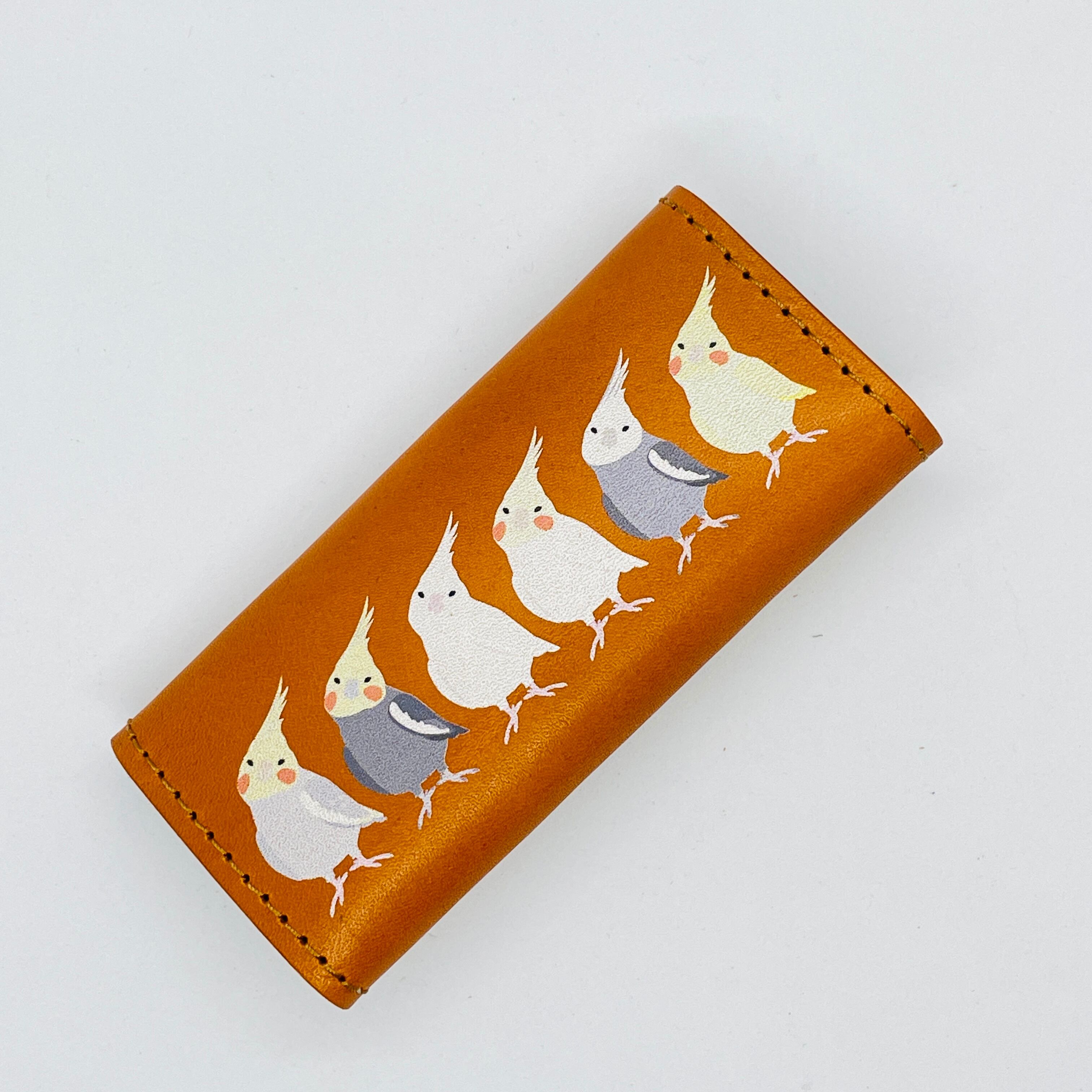 もっともオーソドックスな形、鍵を付ける金具は4連の壊れにくくて着脱が容易なGリングを採用しました。また日常使いのアイテムですので、できるだけ軽くそして強度はしっかりの最適な厚みにした革で制作しました。