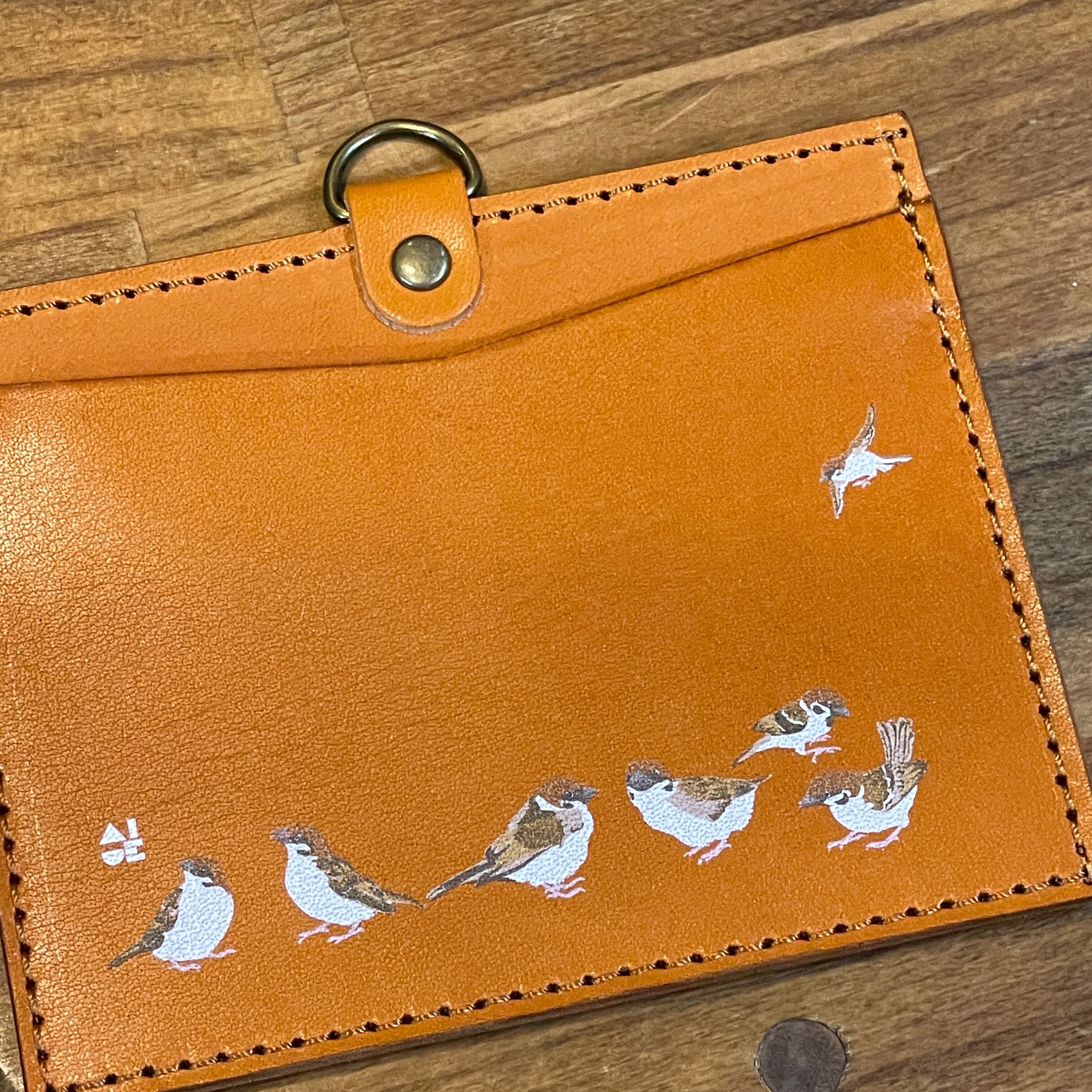 IDカードホルダー スズメ いっぱい キャメル (ストラップなし) すずめ 雀