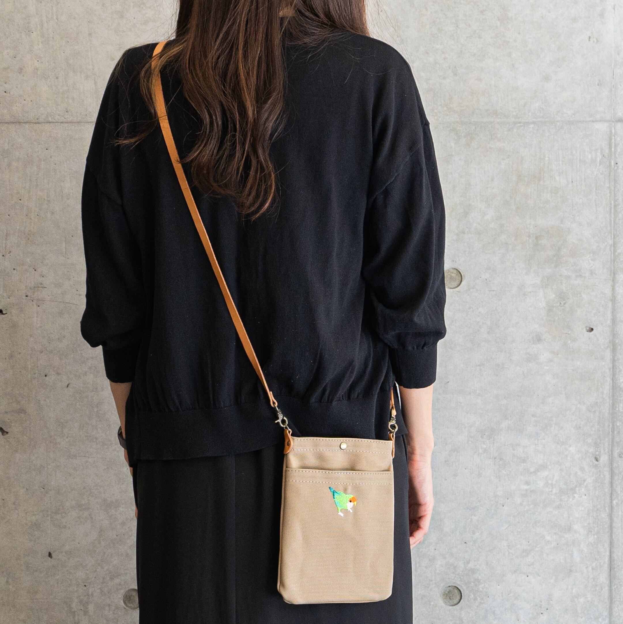 スマホポシェット ハシビロコウ グレー 帆布 と 岡山デニム