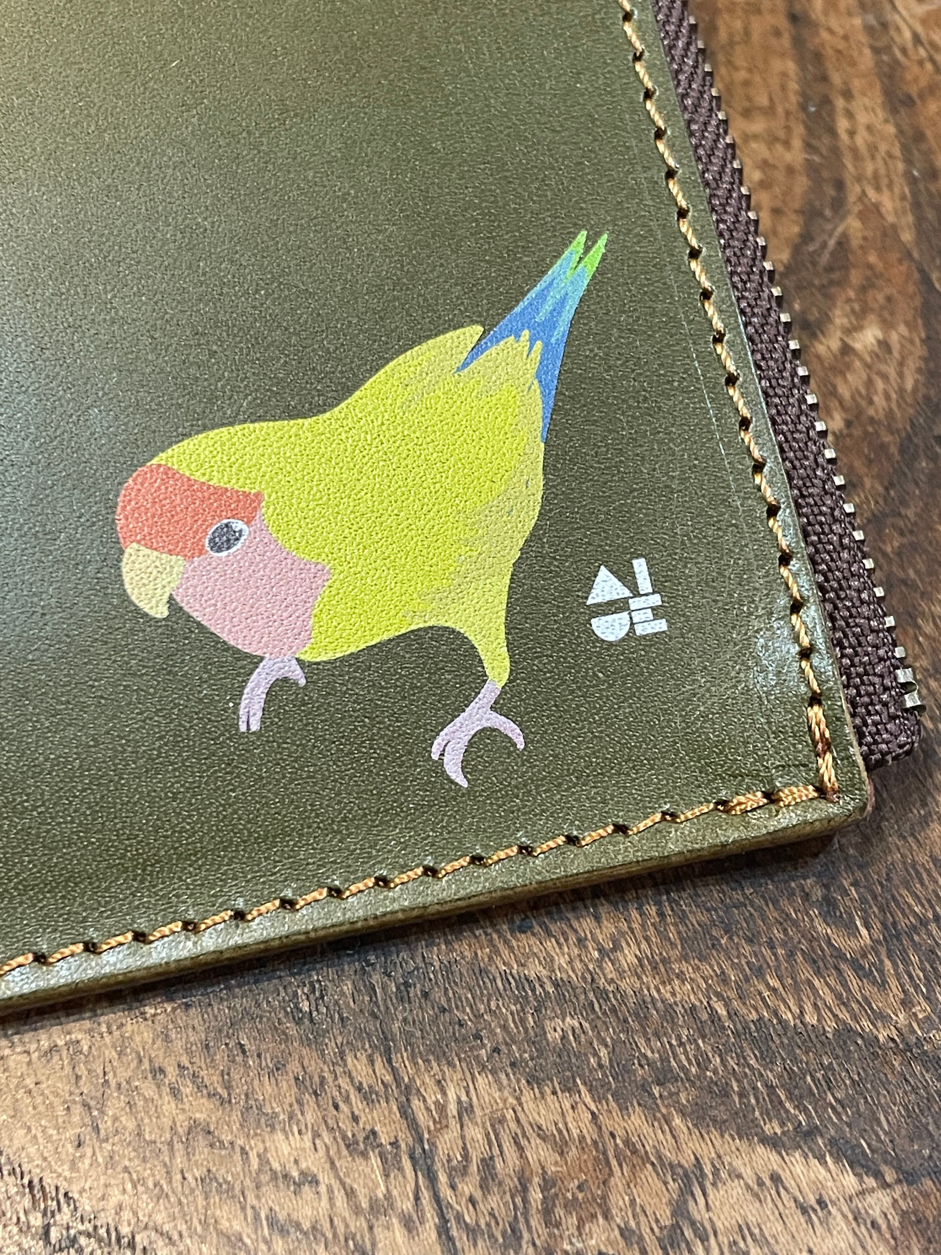 どうぞ可愛いイラストと同時に本革の経年変化をお愉しみください。