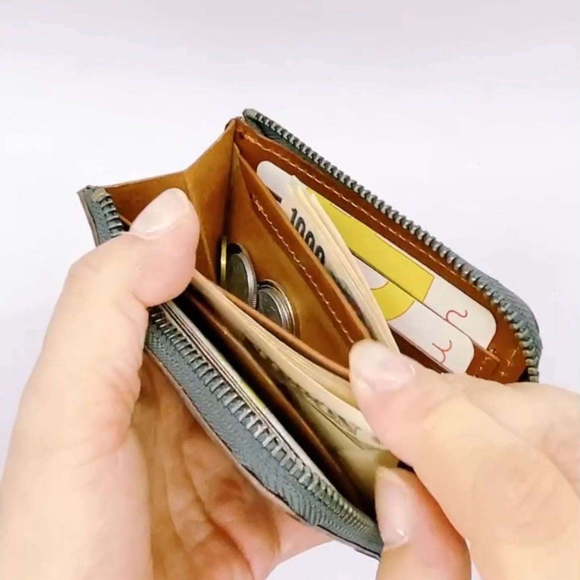 その小銭入れを挟むようにお札を入れていただけます。