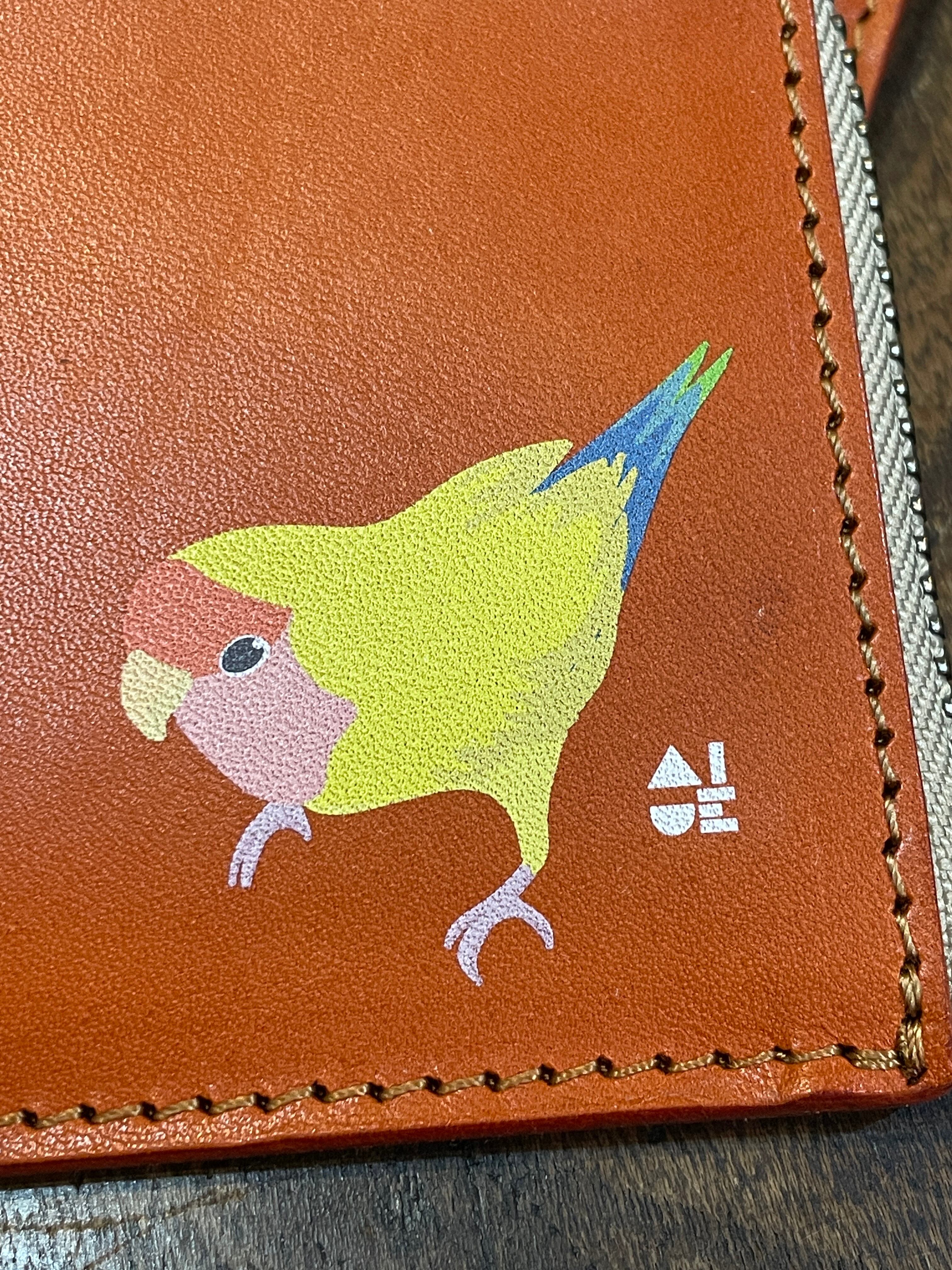 どうぞ可愛いイラストと同時に本革の経年変化をお愉しみください。