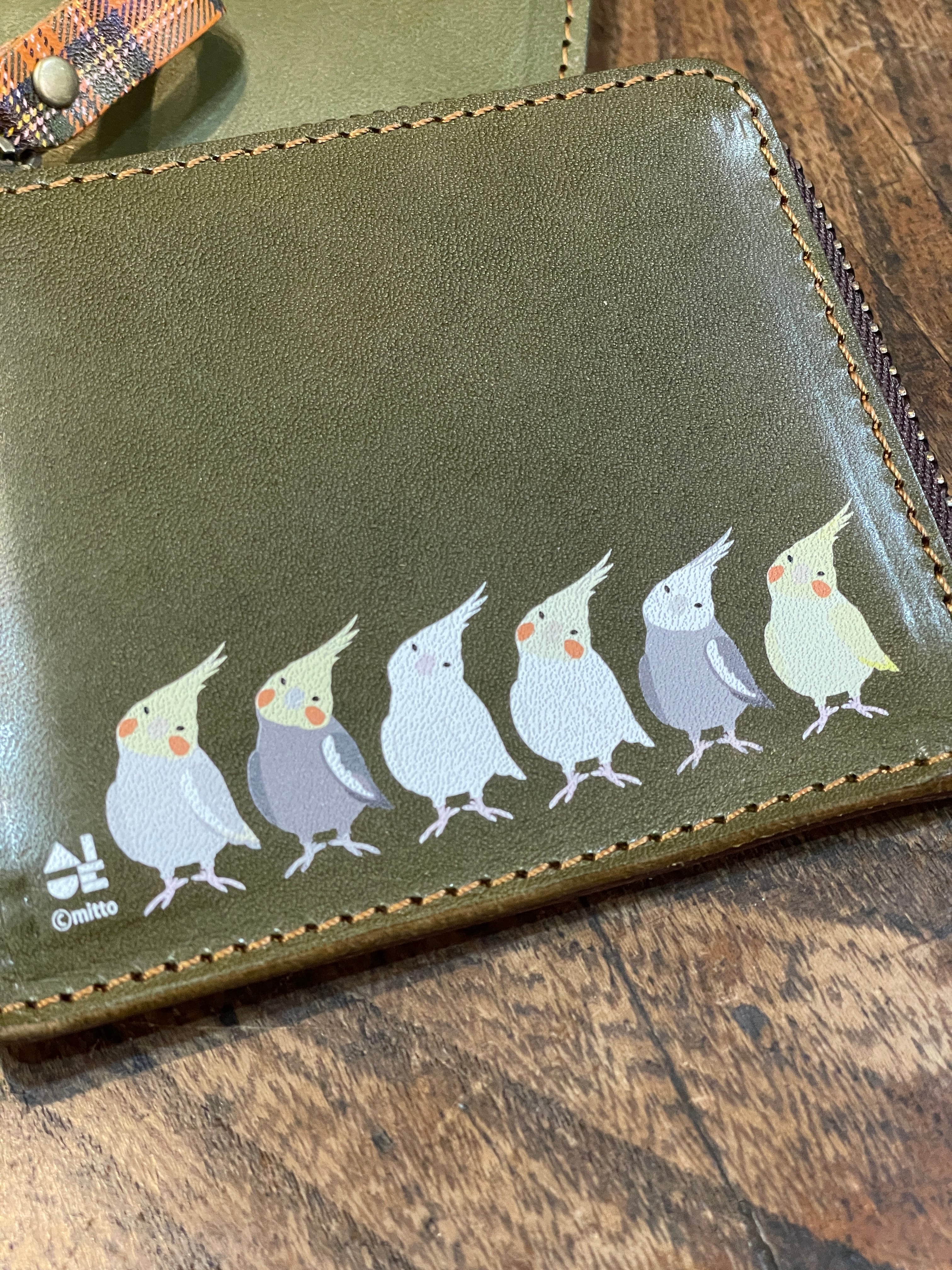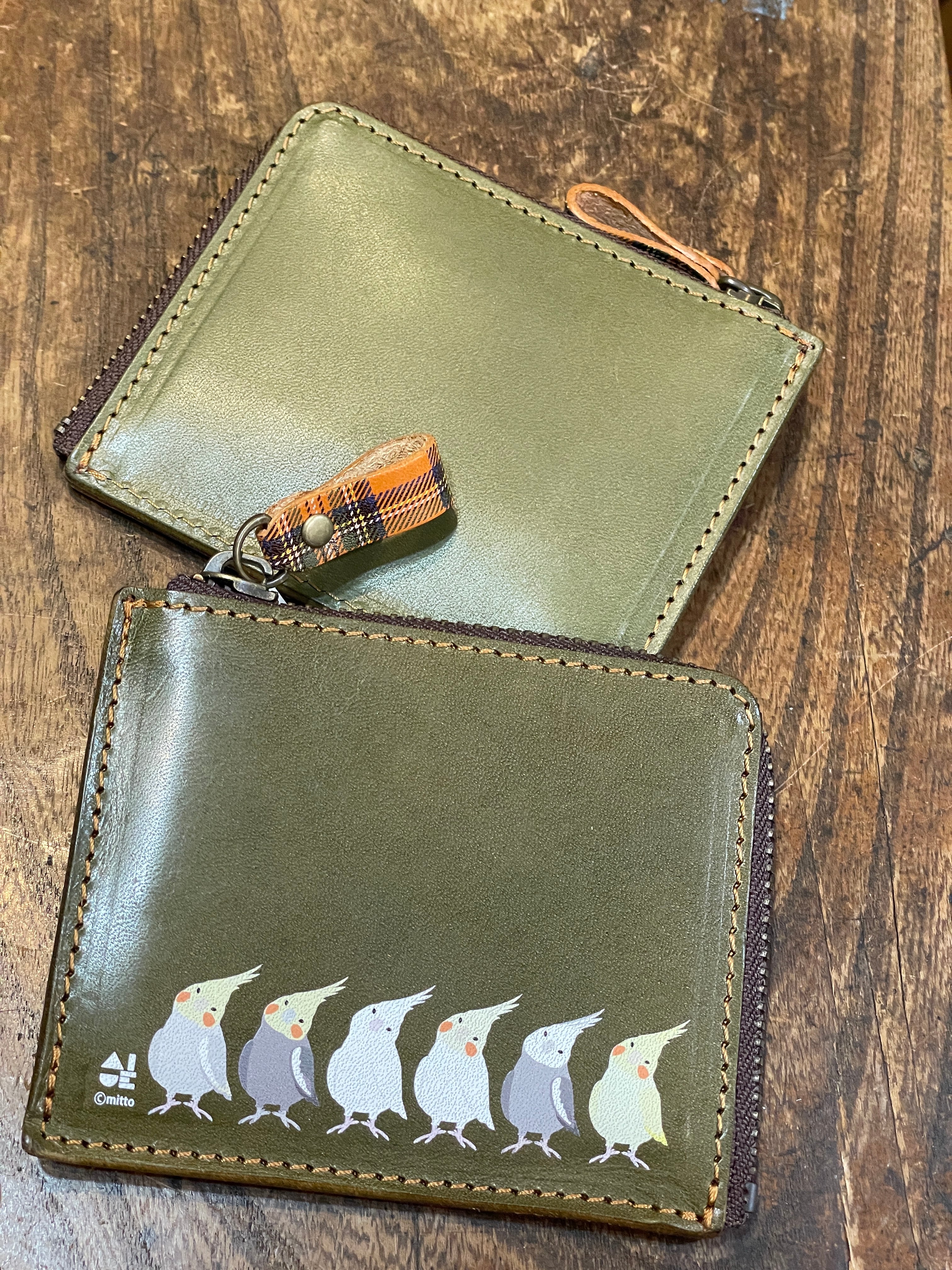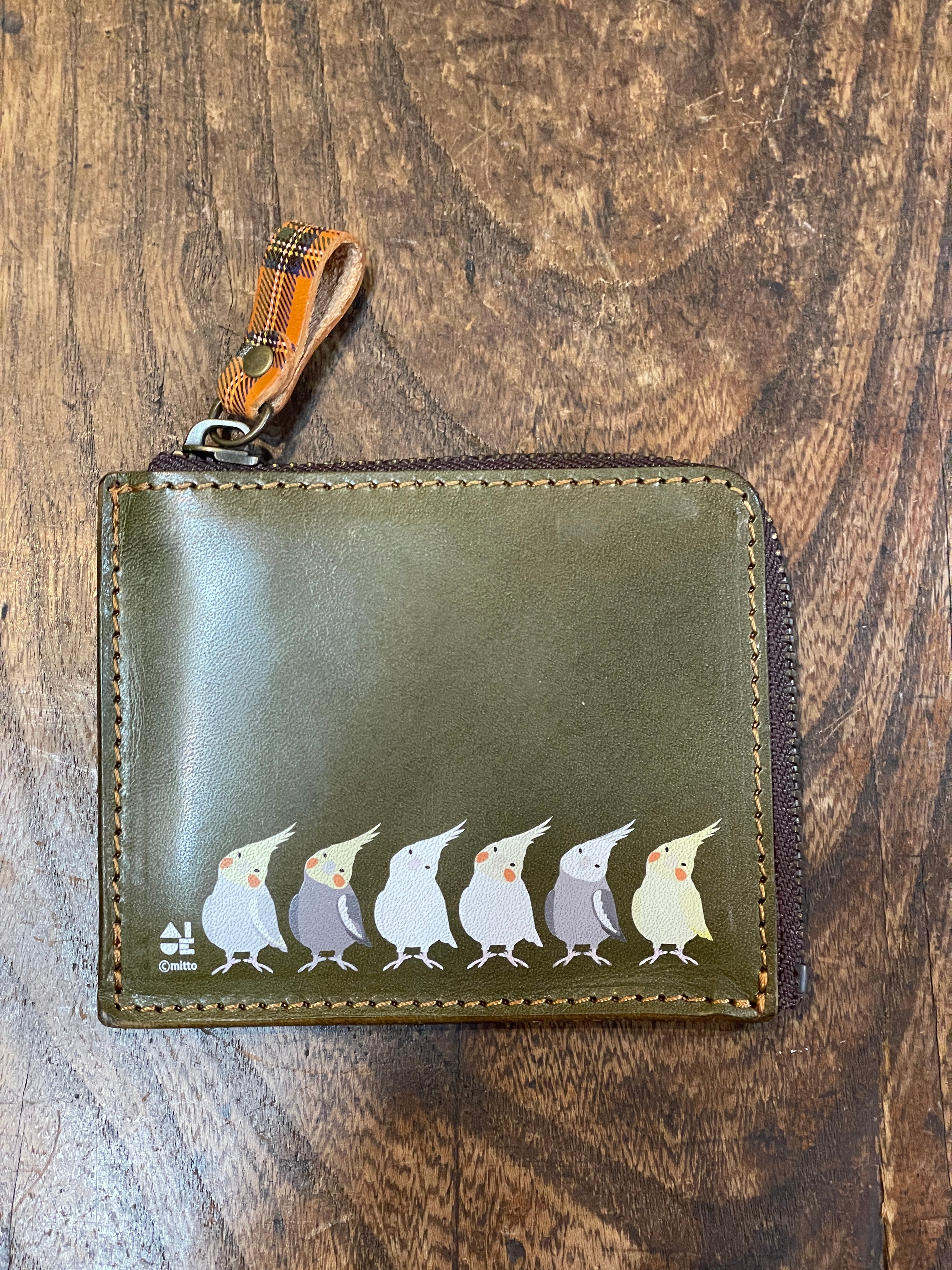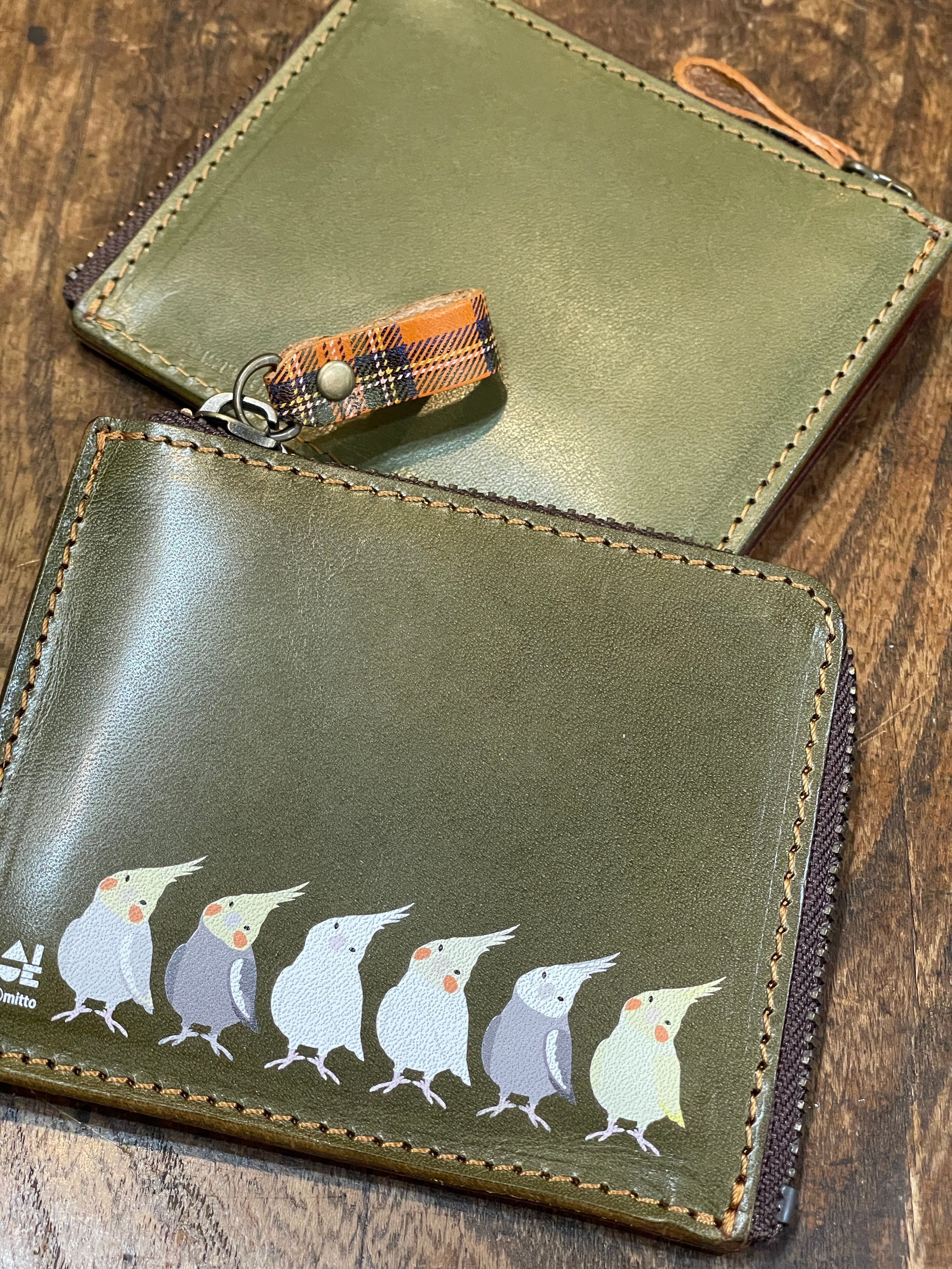 【送料無料】 L字ファスナー財布 グリーン オカメインコ ぽわんシリーズ 財布 栃木レザー