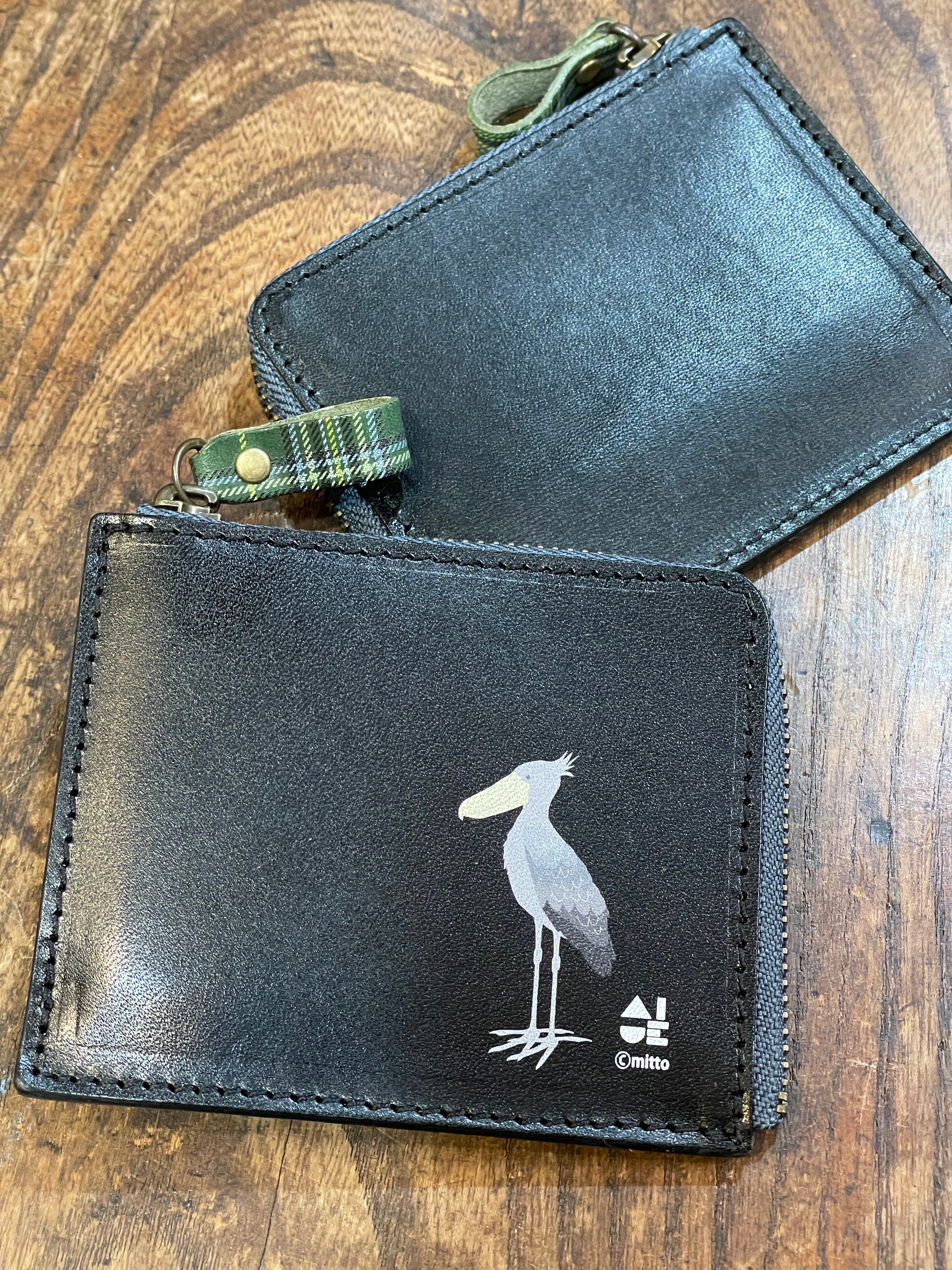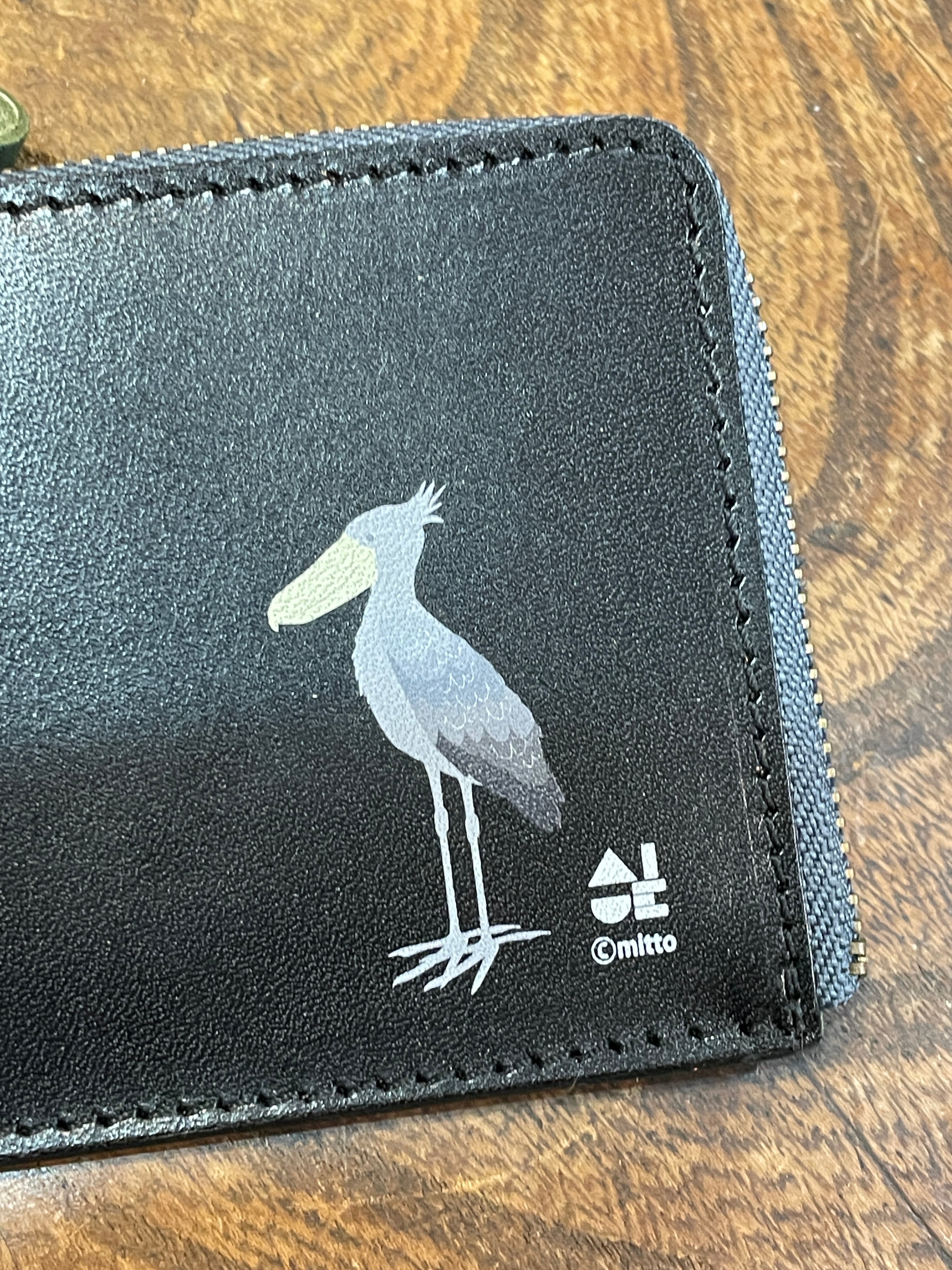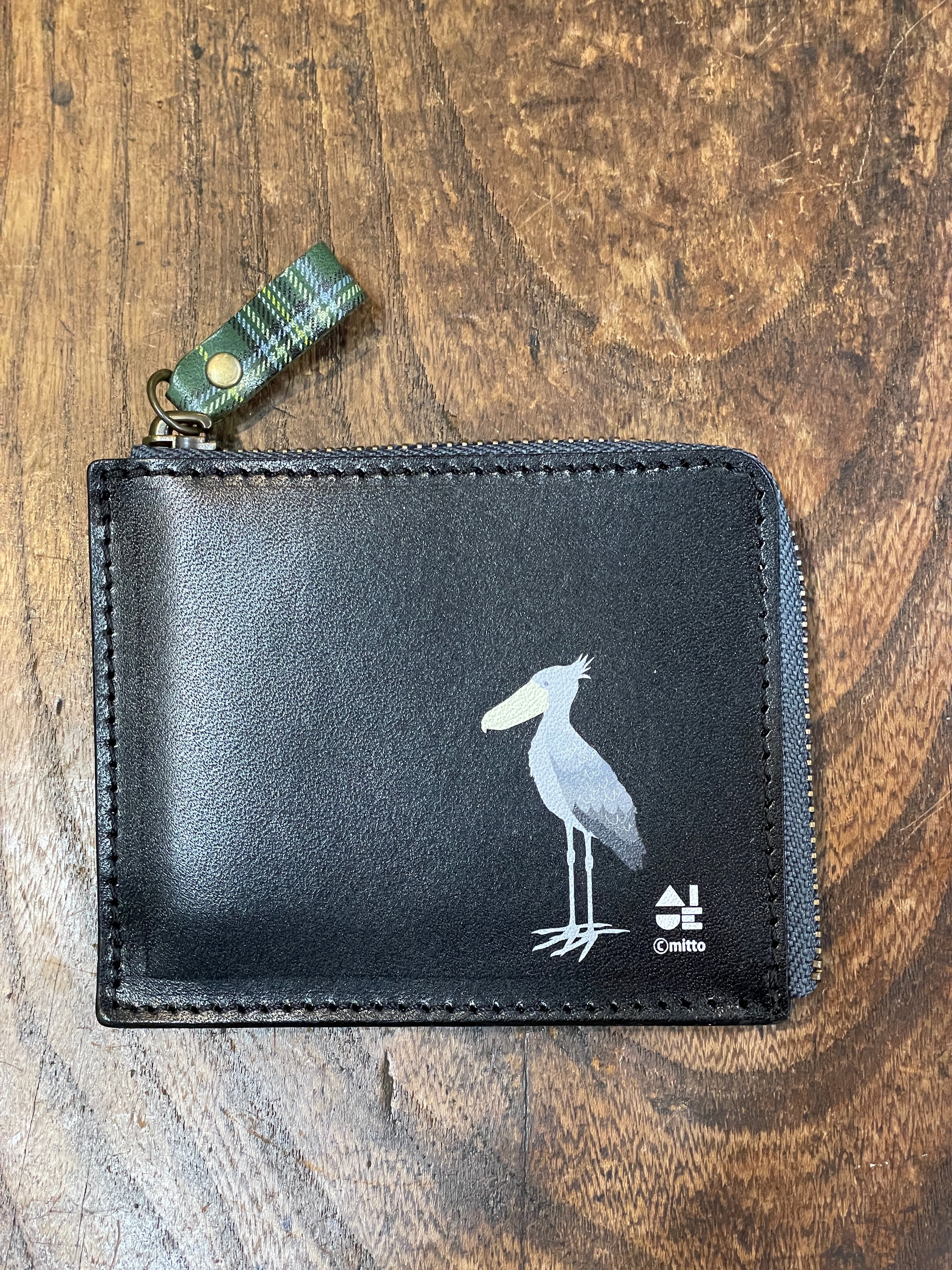 【送料無料】 L字ファスナー財布 ブラック ハシビロコウ 全身 財布 Black 黒 はしびろこう 栃木レザー
