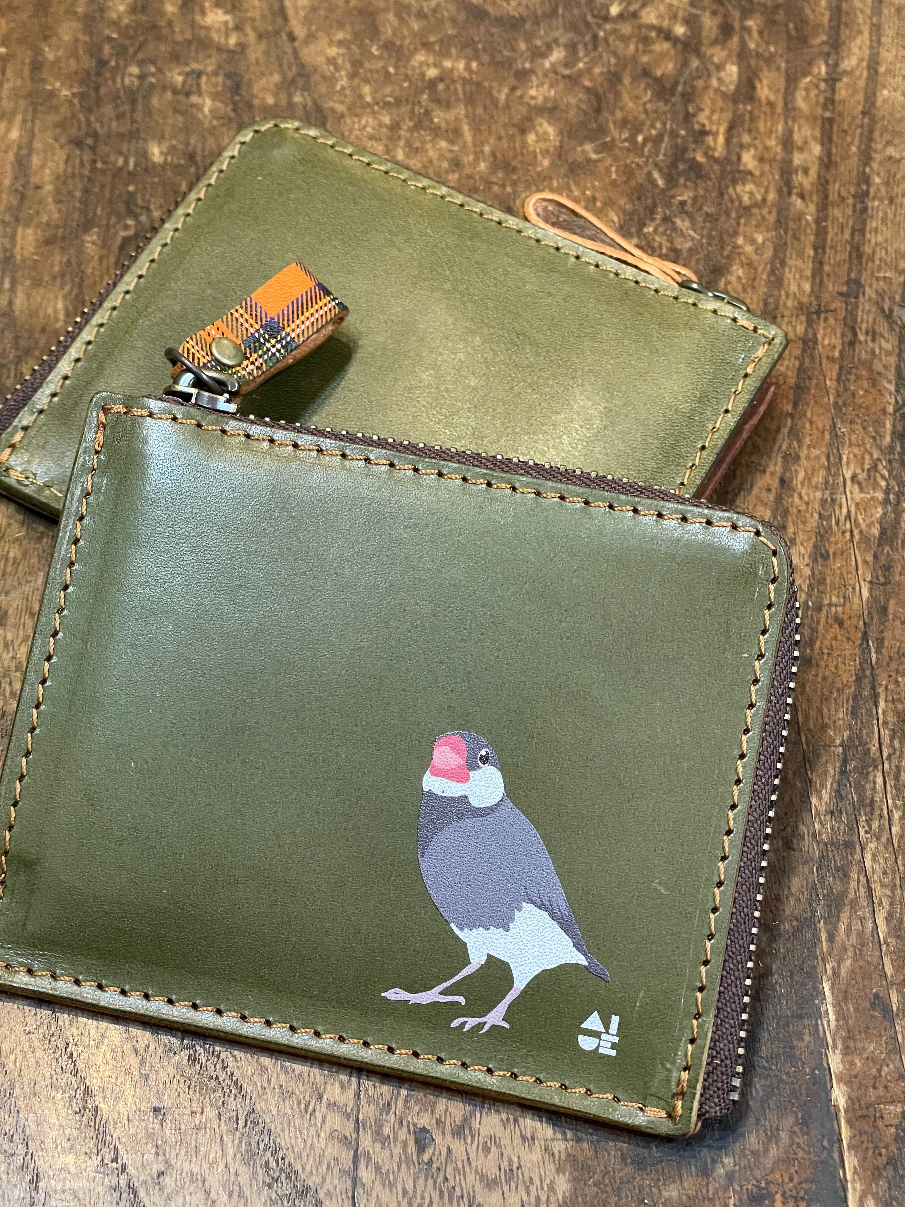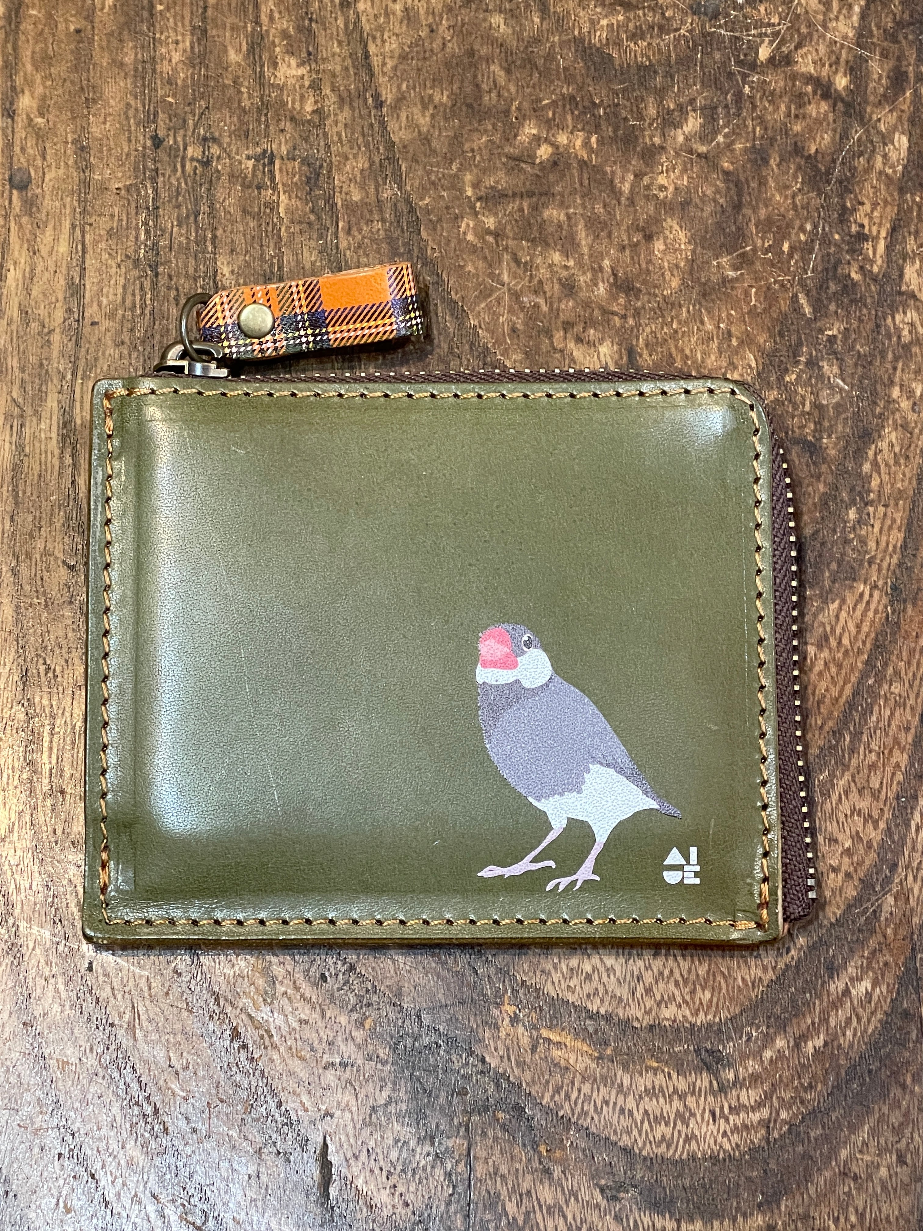【送料無料】 L字ファスナー財布 桜文鳥 グリーン 文鳥 財布 さいふ