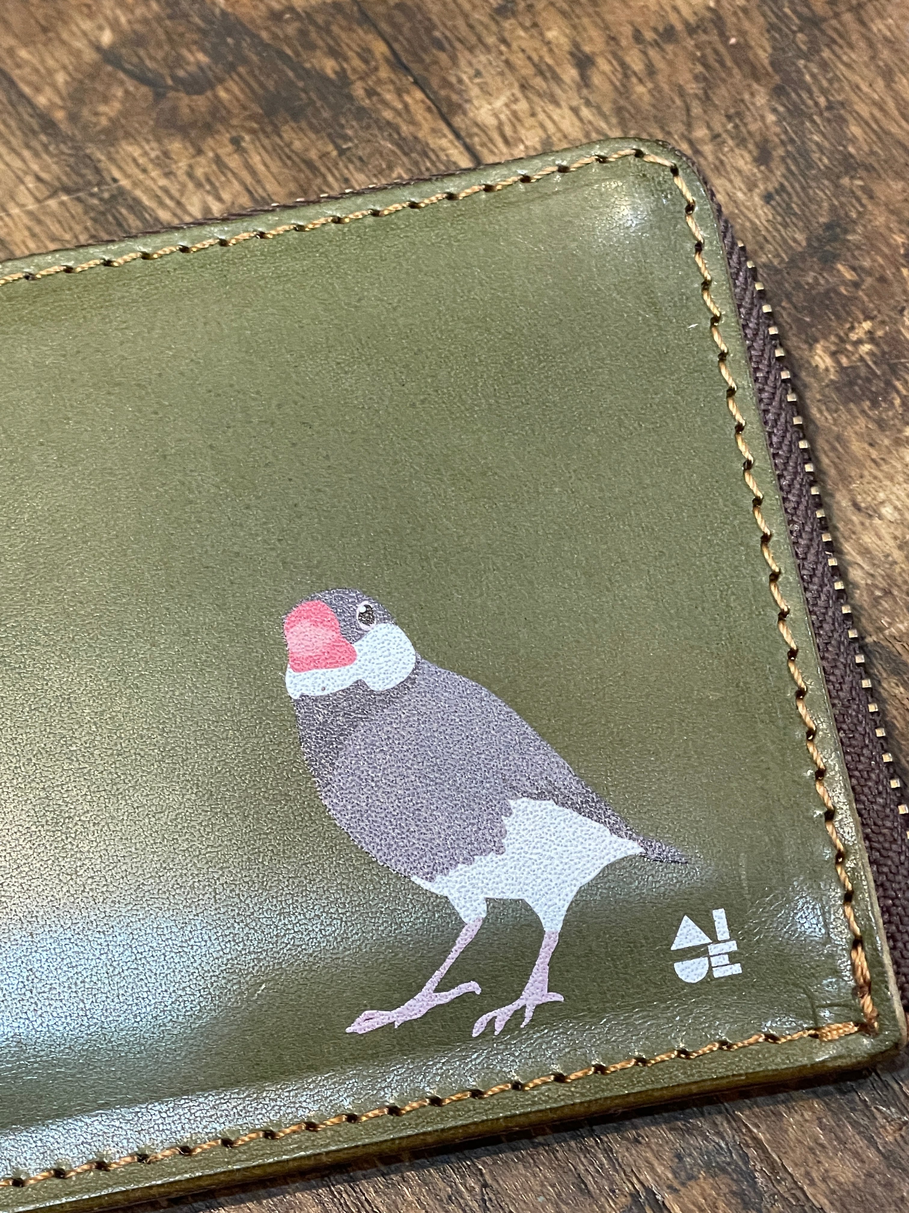 どうぞ可愛いイラストと同時に本革の経年変化をお愉しみください。