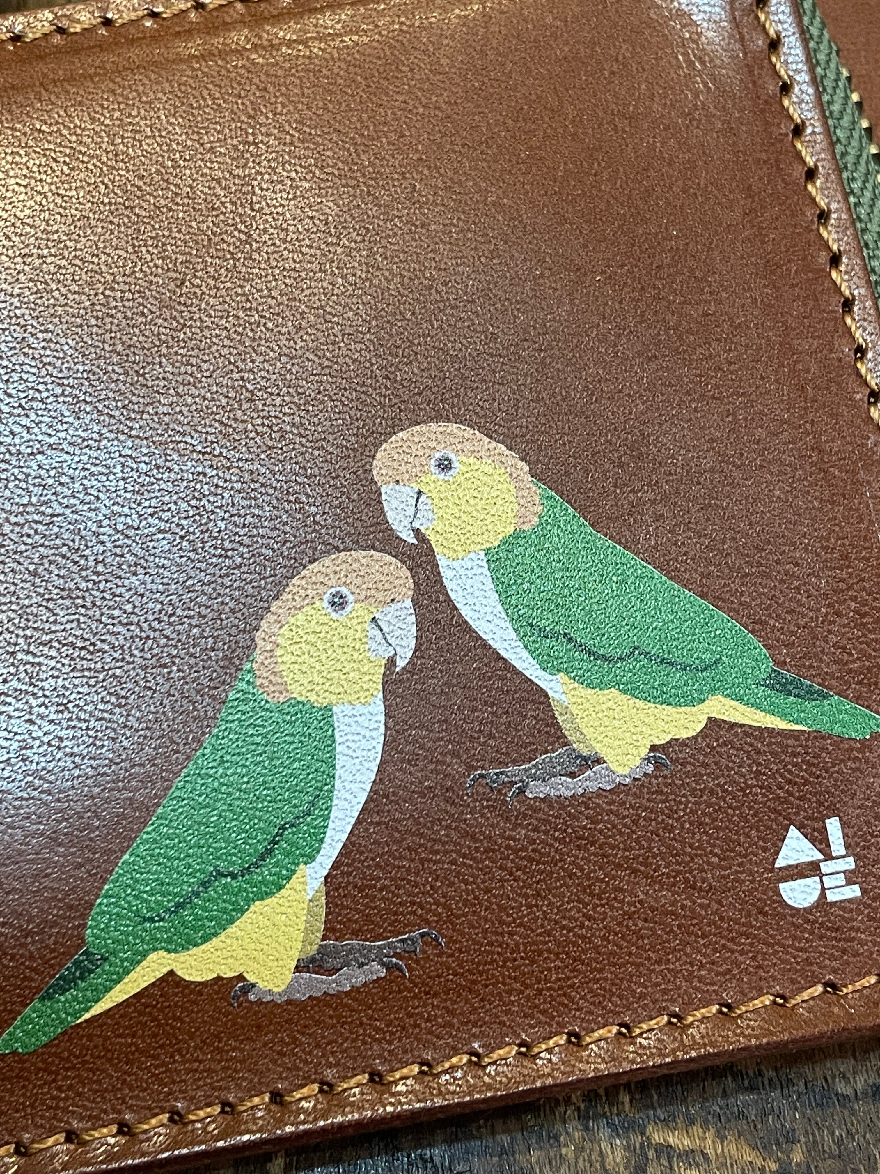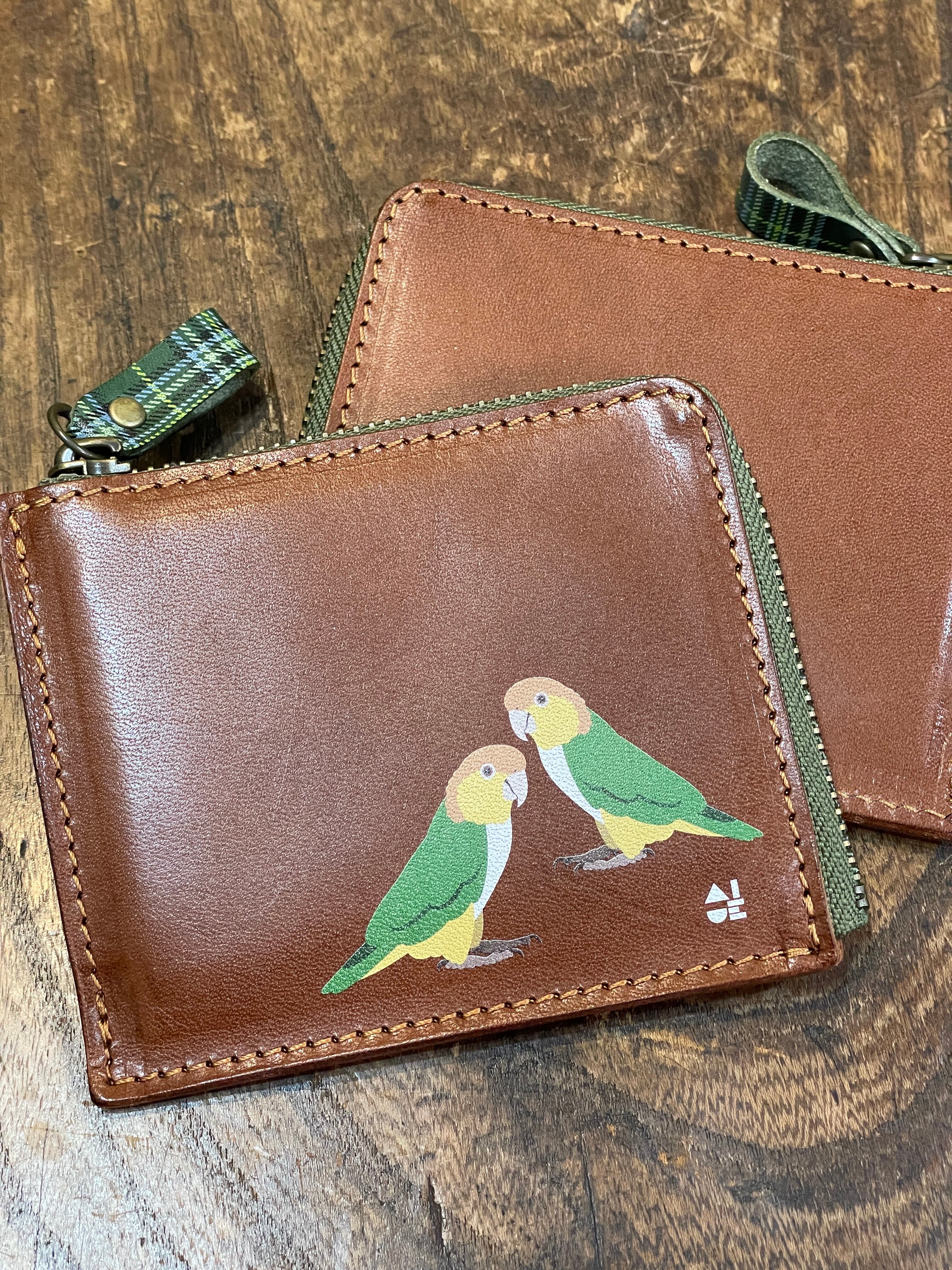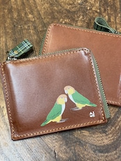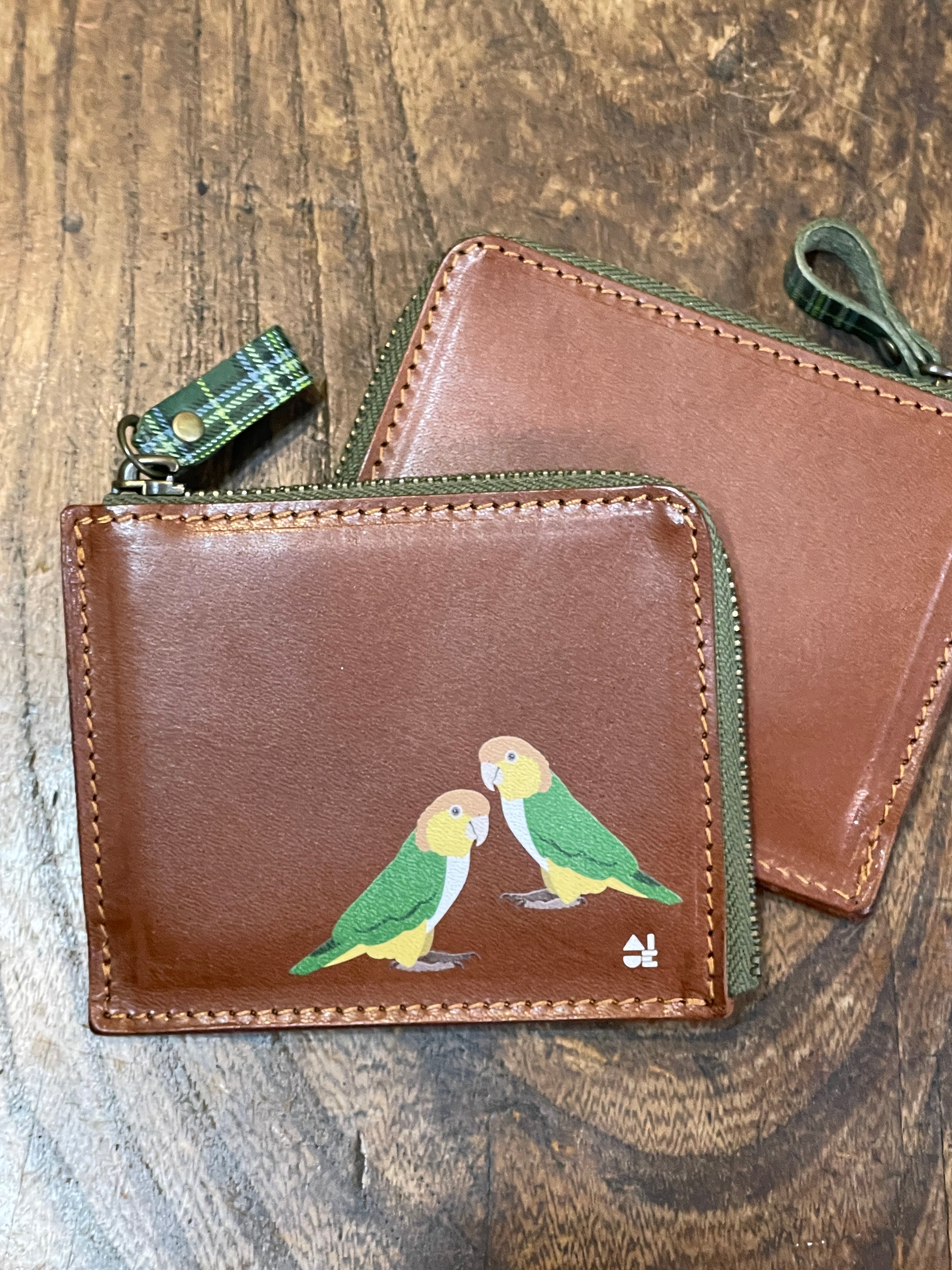 【送料無料】 L字ファスナー財布 ブラウン シロハラインコ 2羽 Brown 財布 しろはらいんこ 栃木レザー