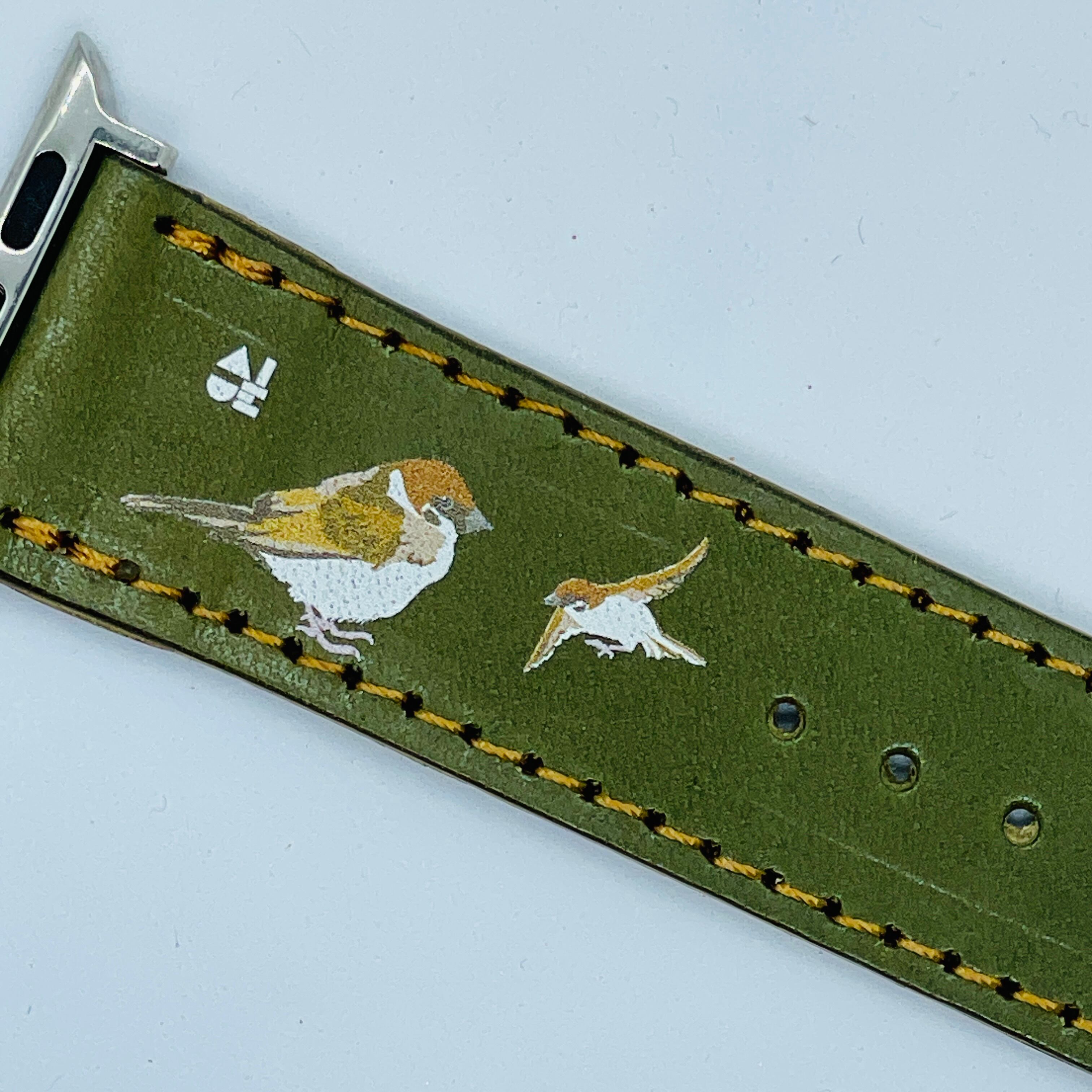 Apple Watch バンド スズメ 雀 すずめ グリーン × ブラウン タータンチェック GREEN アップルウォッチバンド 時計ベルト せきせいいんこ AppleWatch 対応 バンド シリーズ9 SE2023 8 SE2 7 6 SE 5 4 3 2 1に対応 | sasatte STORE|ささってストア